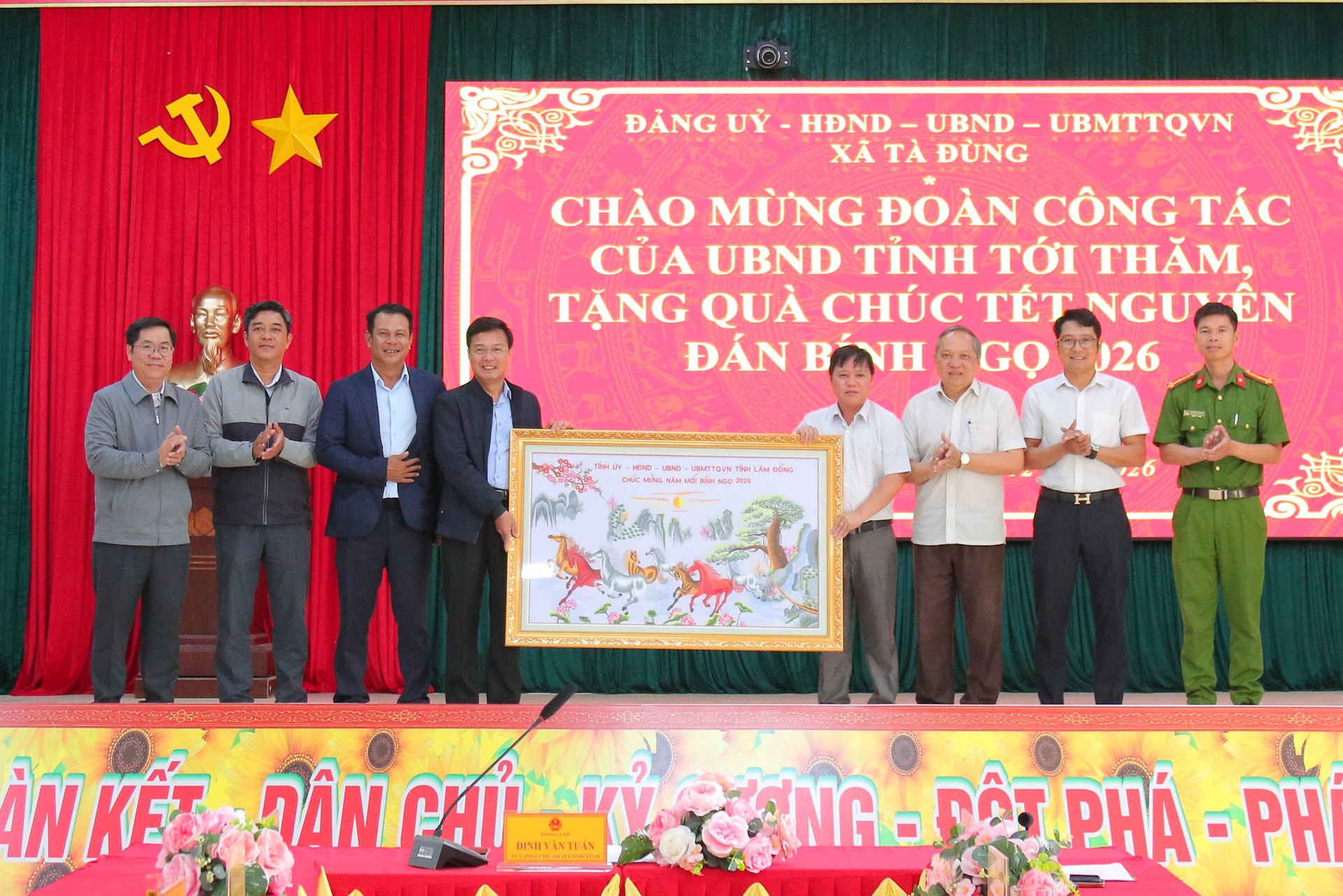 Phó Chủ tịch UBND tỉnh Đinh Văn Tuấn cùng đoàn công tác tặng quà Tết cho tập thể xã Tà Đùng