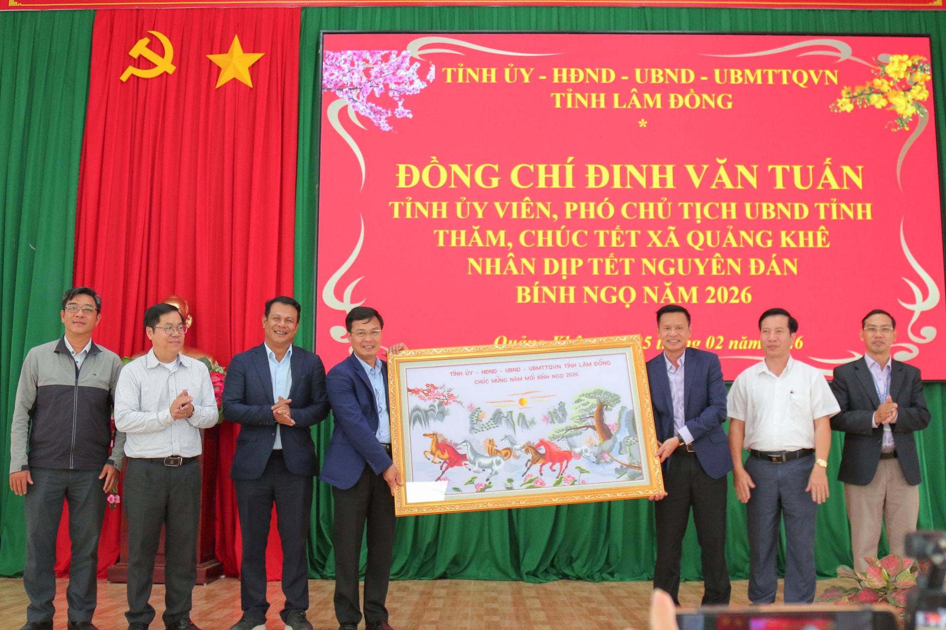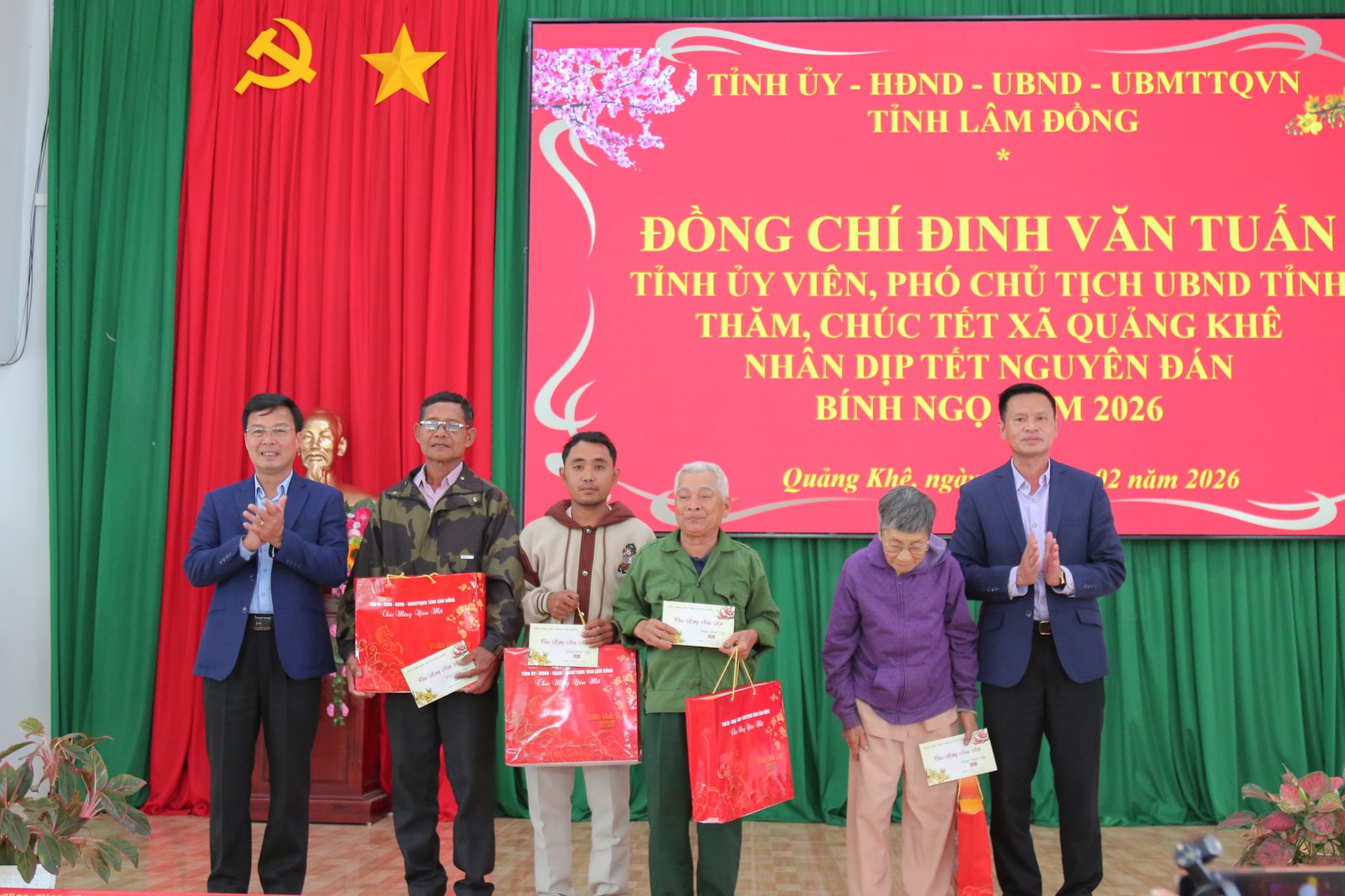 Phó Chủ tịch UBND tỉnh Lâm Đồng Đinh Văn Tuấn cùng đoàn công tác tặng quà Tết cho tập thể xã Quảng Khê