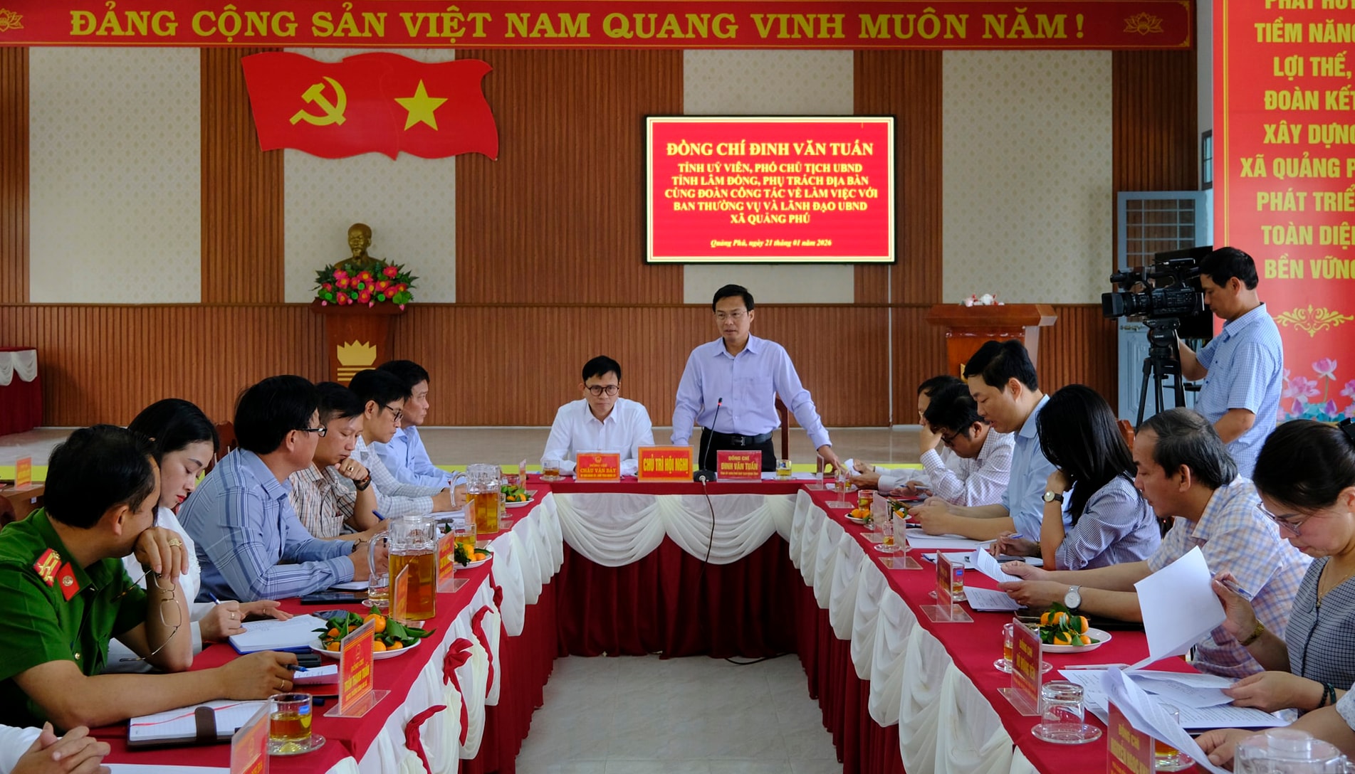 Tỉnh ủy viên, Phó Chủ tịch UBND tỉnh Lâm Đồng Đinh Văn Tuấn làm việc với Ban Thường vụ và UBND xã Quảng Phú