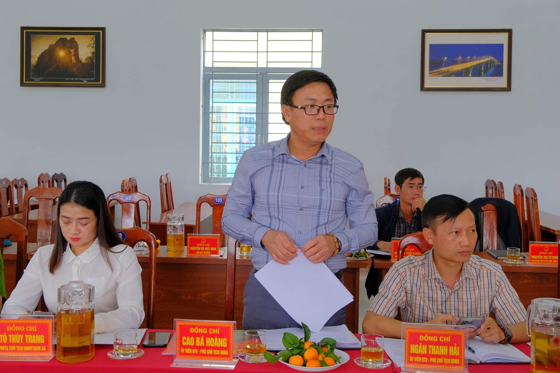 Phó Chủ tịch UBND xã Quảng Phú Cao Bá Hoàng báo cáo tại buổi làm việc