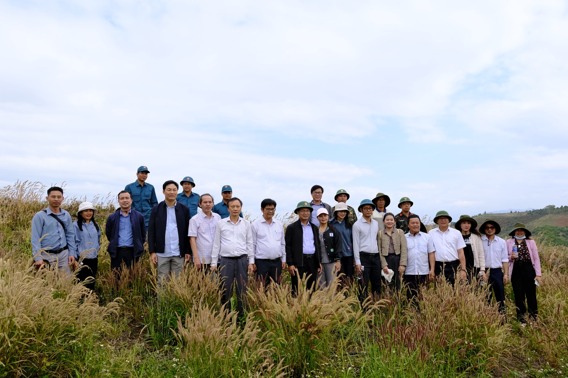Đoàn công tác chụp ảnh kỷ niệm tại khu vực núi lửa Nâm Kar