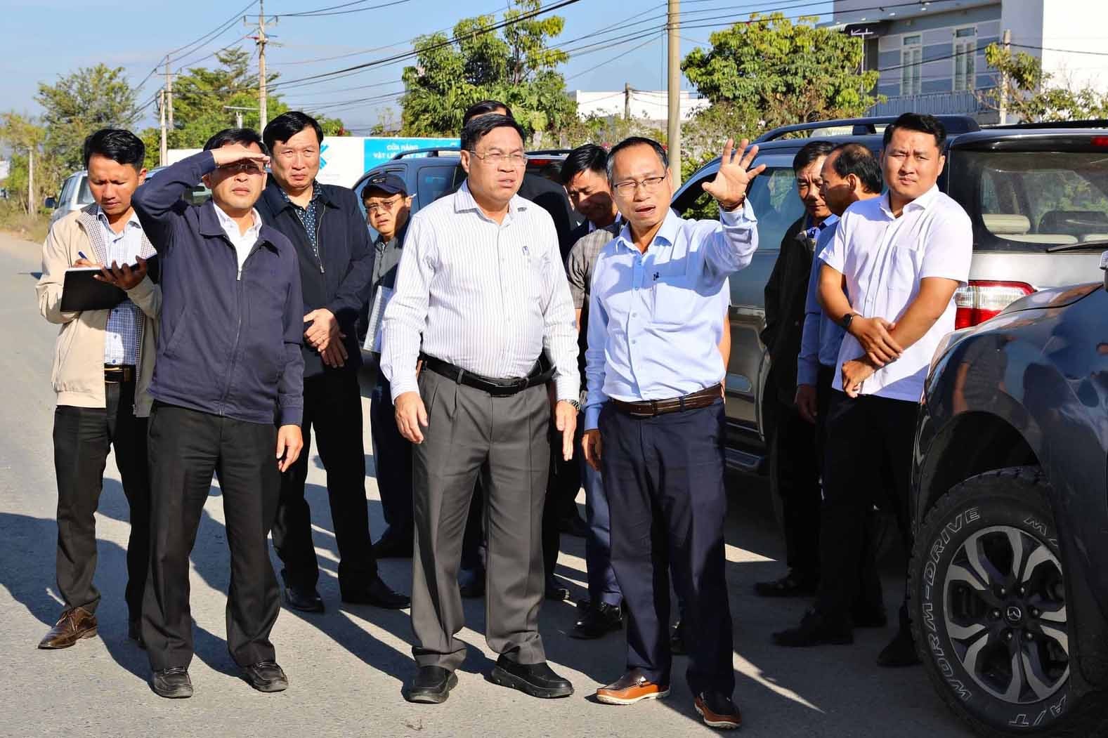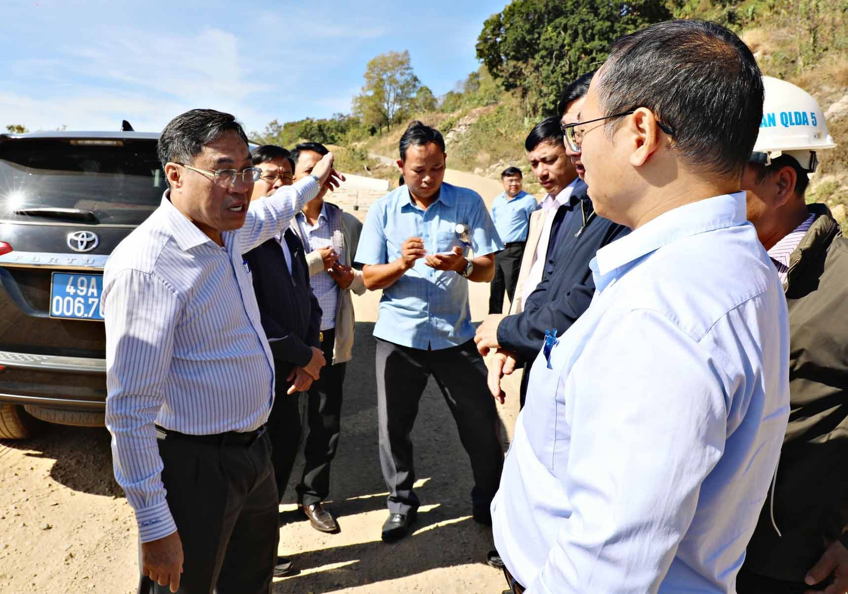 Phó Chủ tịch UBND tỉnh Lâm Đồng Võ Ngọc Hiệp đốc thúc các đơn vị đẩy nhanh tiến độ thi công Dự án nâng cấp Quốc lộ 28B. Ảnh: Chính Thành
