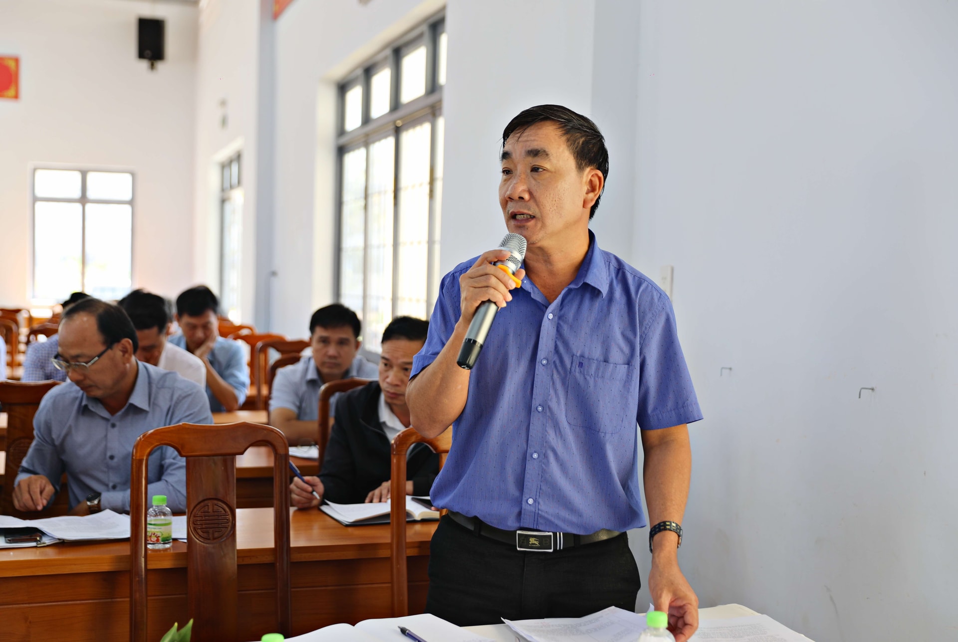 Ông Võ Tiến Trung, Chủ tịch UBND xã Lương Sơn báo cáo 10 trường hợp vướng mắc liên quan tới công tác đền bù, giải phóng mặt bằng đoạn dự án qua địa bàn xã. Ảnh: Chính Thành