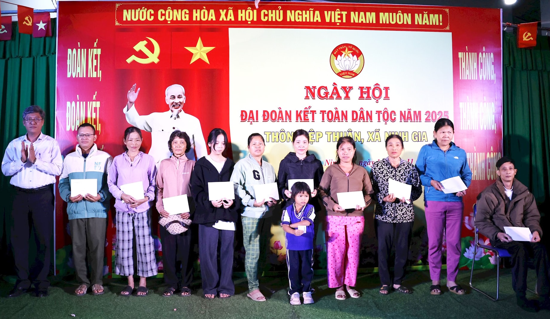 Cũng trong khuôn khổ chương trình, xã Ninh Gia cũng trao quà cho các hộ nghèo và hộ cận nghèo; các tập thể, cá nhân xuất sắc trong xây dựng cộng đồng dân cư và các gia đình văn hóa tiêu biểu đã lần lượt nhận giấy khen của UBND xã và Ủy ban MTTQ Việt Nam xã.
