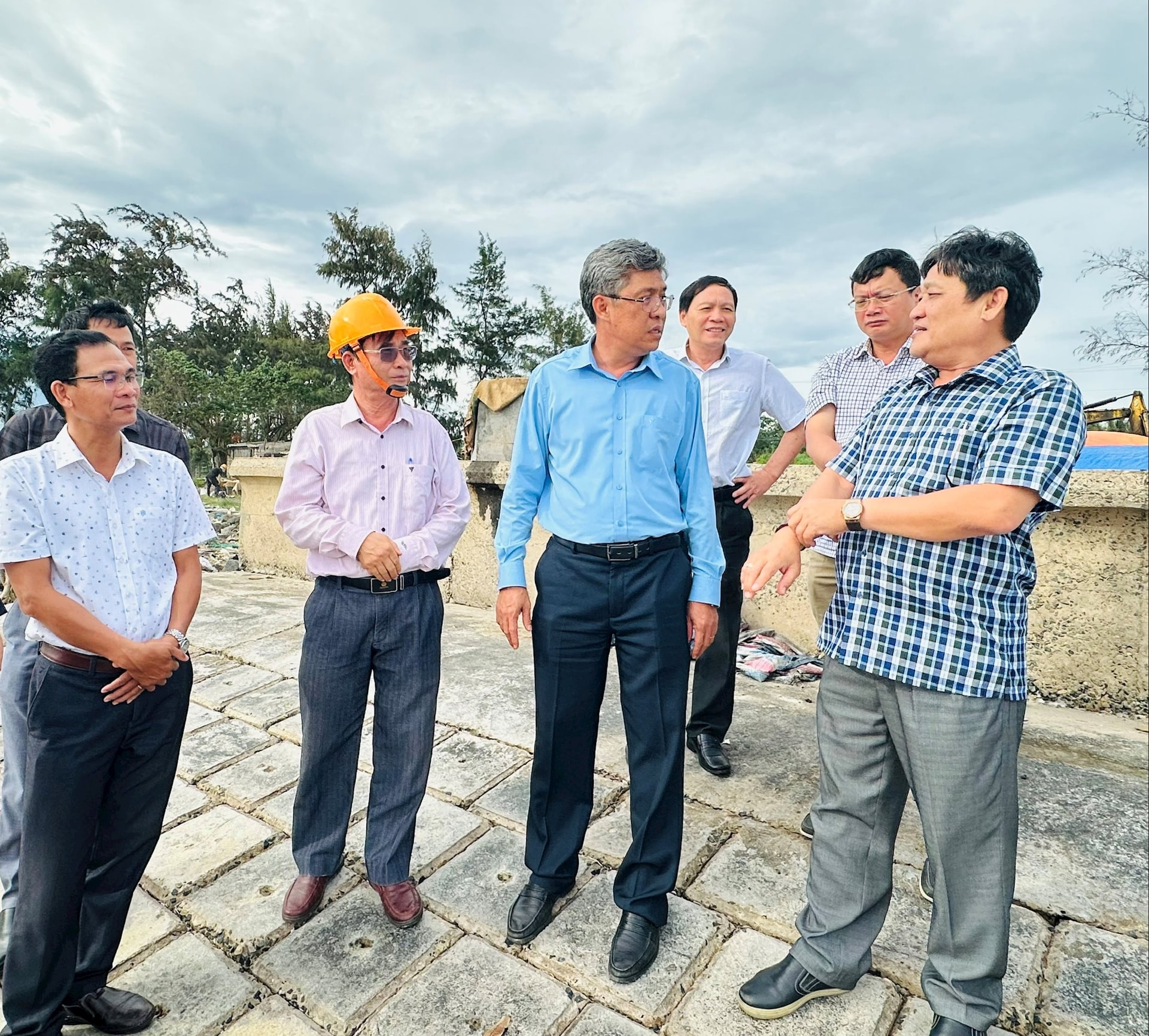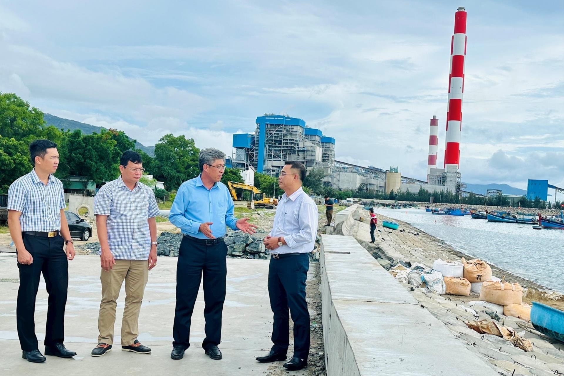Phó Chủ tịch UBND tỉnh Lâm Đồng trao đổi với chủ đầu tư và nhà thầu tại Dự án Kè bảo vệ bờ biển Bình Thạnh giai đoạn 2