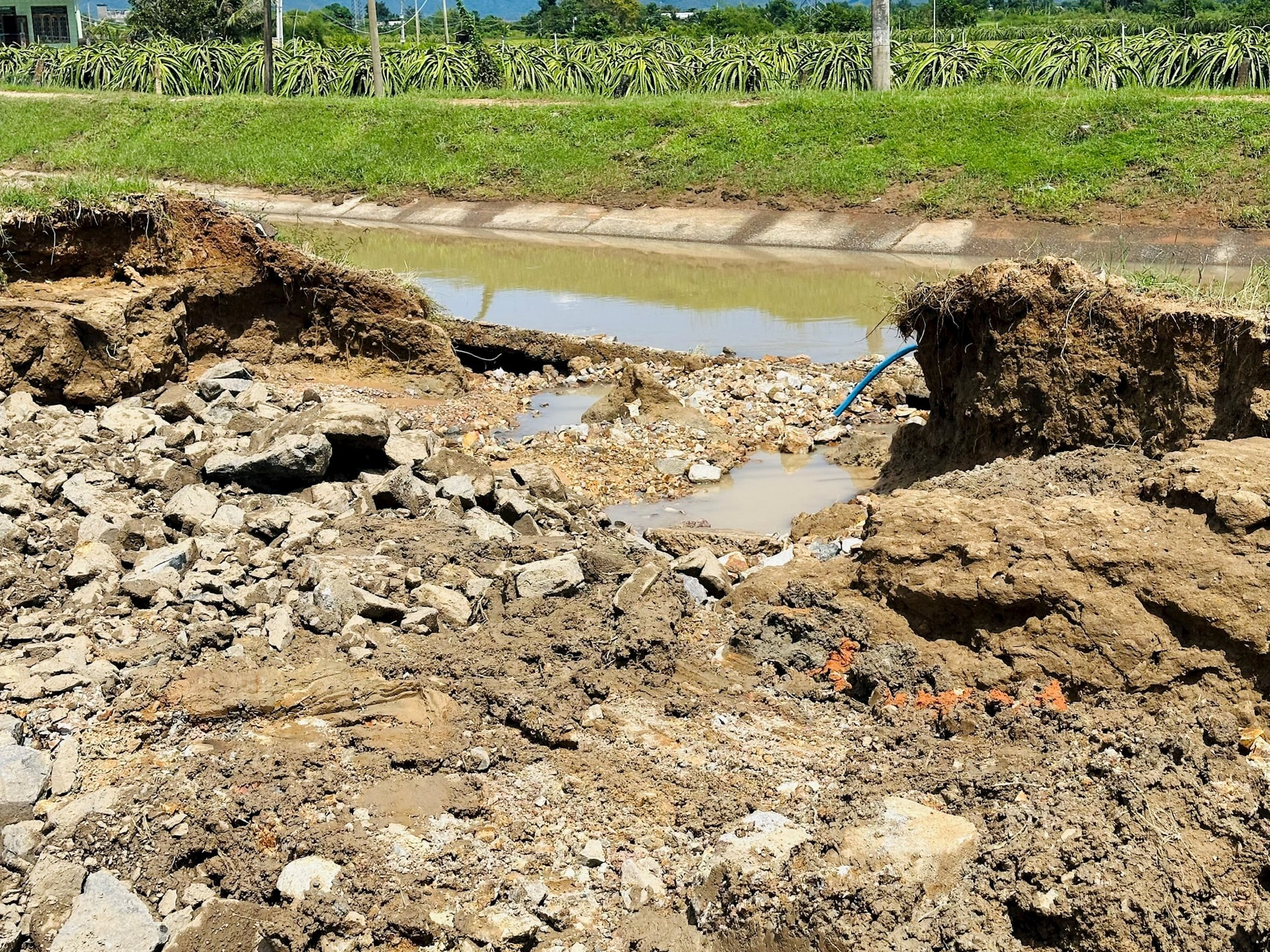 Đoạn sạt lở do mưa lớn vào tối 7/11 tại kênh Sông Quao