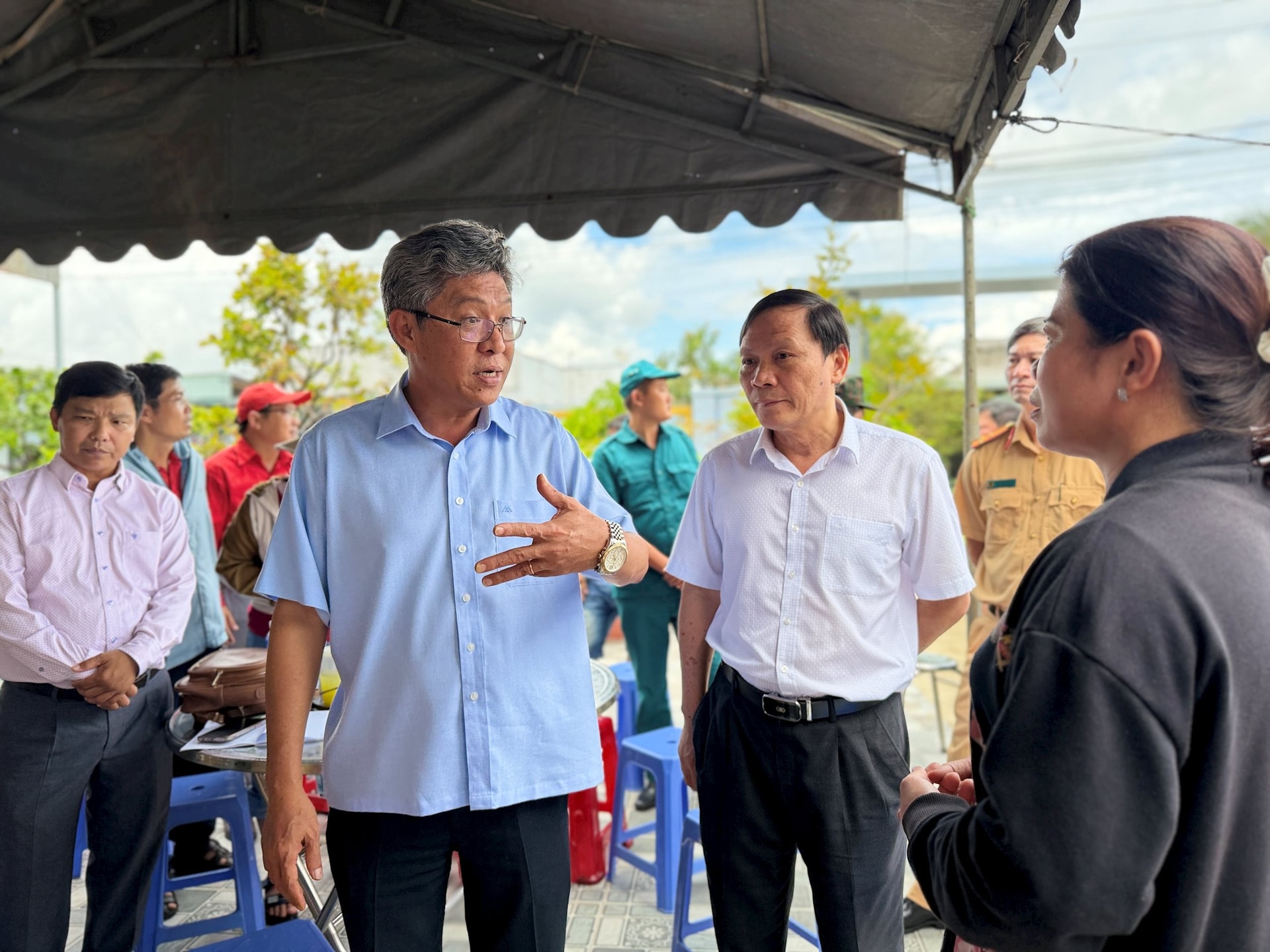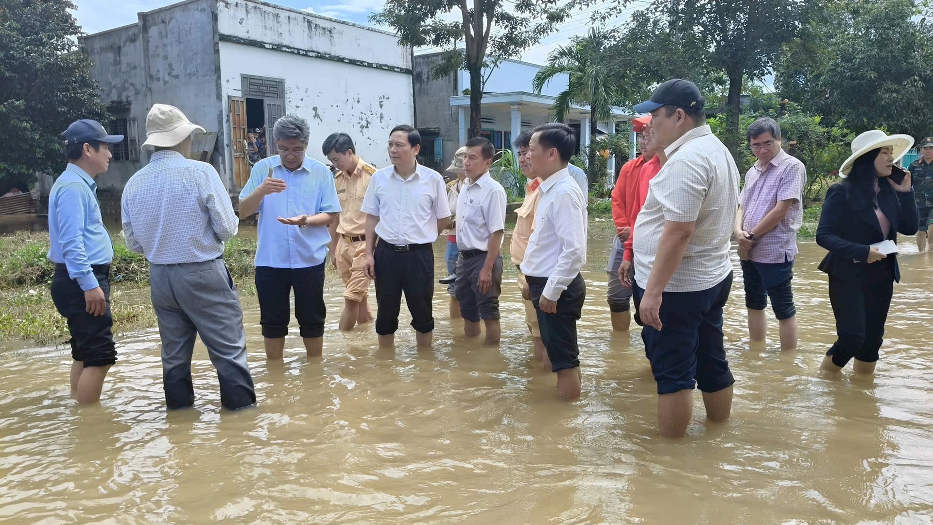 Phó Chủ tịch UBND tỉnh Nguyễn Minh cùng đoàn công tác thăm các hộ dân bị ngập tại xã Hàm Thuận