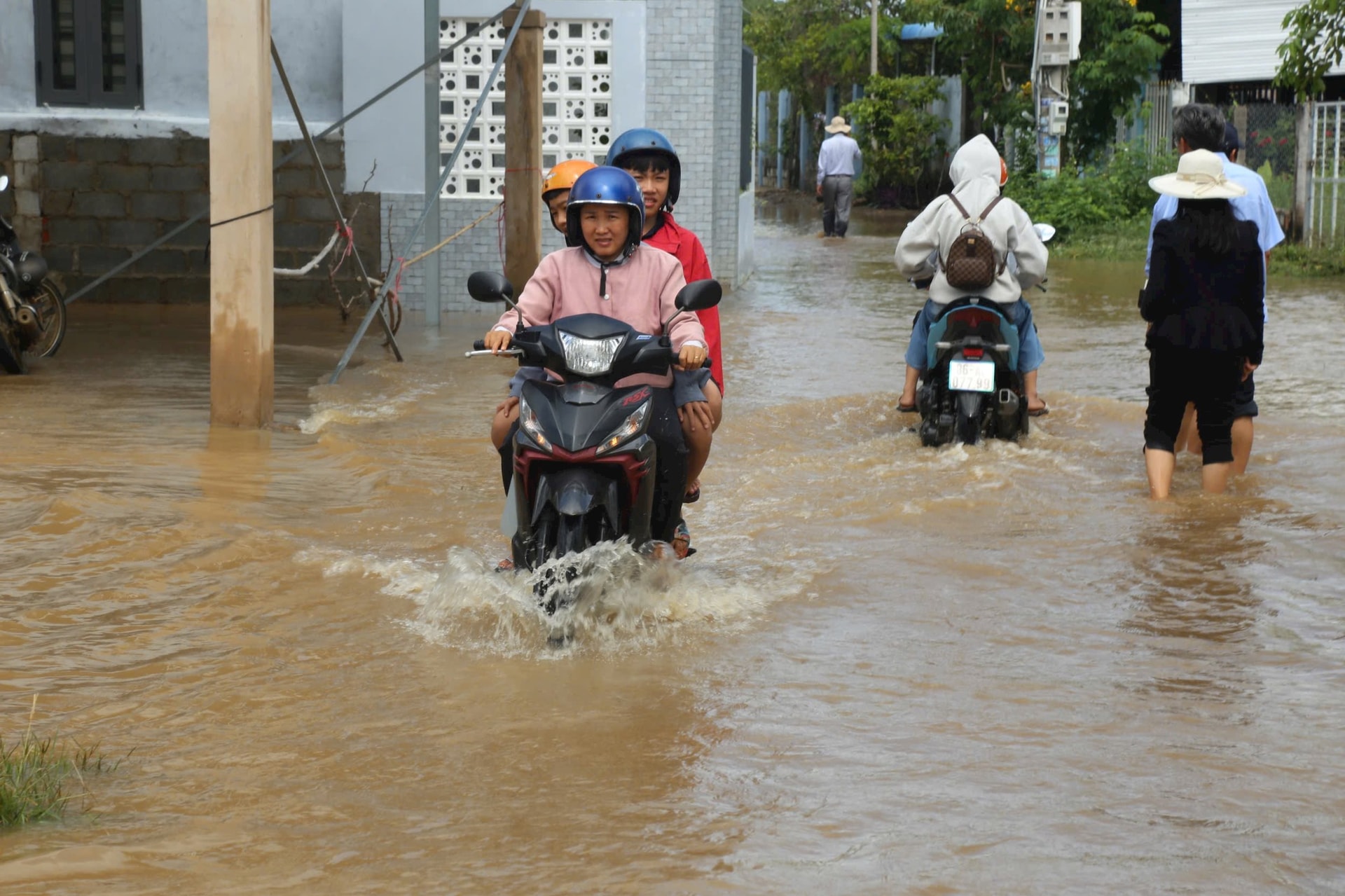 Đến sáng 31/10, nhiều tuyến đường xã Hàm Thuận vẫn ngập nước