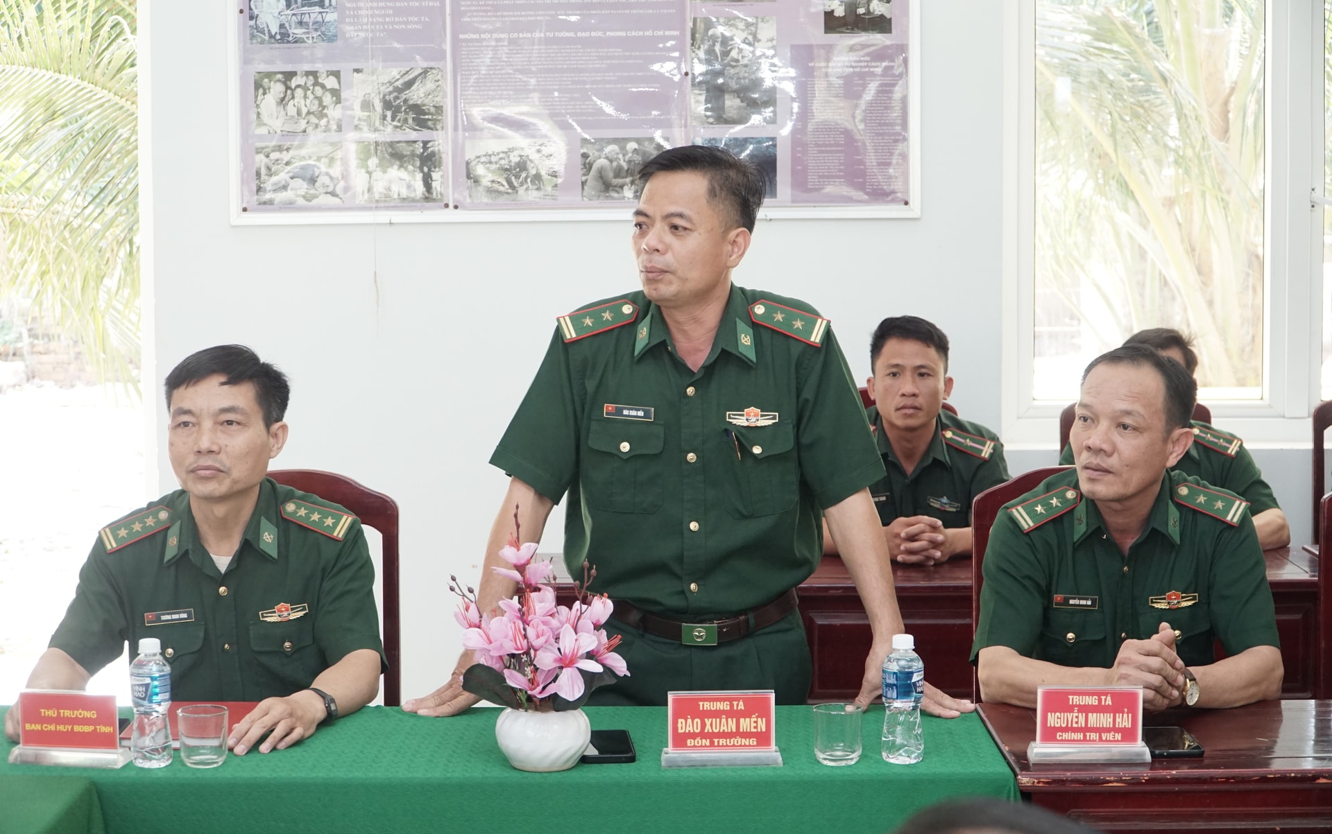 Tại đây, Đoàn công tác đã nghe Trung tá Đào Xuân Mến, Đồn trưởng Đồn Biên phòng Tân Thành báo cáo khái quát kết quả thực hiện nhiệm vụ trong thời gian qua.