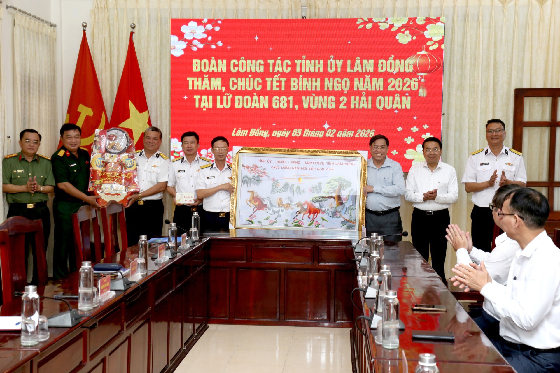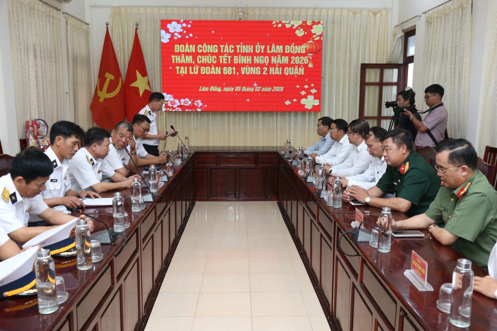 Tại Lữ đoàn 681 - Vùng 2 Hải quân, Đoàn đã được nghe báo cáo về tình hình thực hiện nhiệm vụ và công tác chuẩn bị Tết Nguyên đán của đơn vị. Theo đó, trong năm 2025, Lữ đoàn đã quán triệt, triển khai nghiêm túc các nghị quyết, chỉ thị, mệnh lệnh của cấp trên, duy trì nghiêm chế độ sẵn sàng chiến đấu; tổ chức huấn luyện đúng phương châm, sát nhiệm vụ, đối tượng và địa bàn tác chiến; chú trọng nâng cao khả năng làm chủ vũ khí, trang bị kỹ thuật mới, hiện đại.