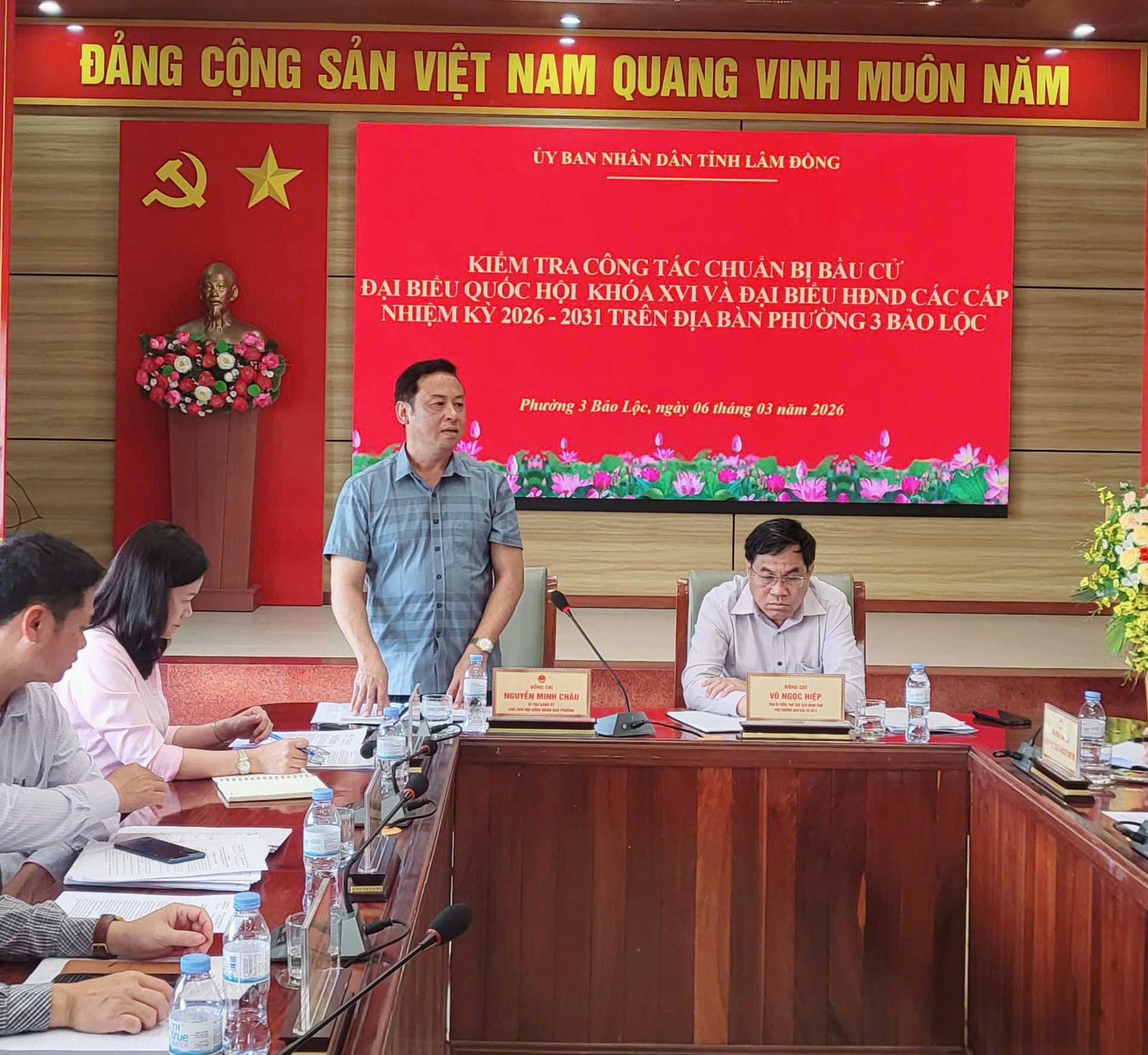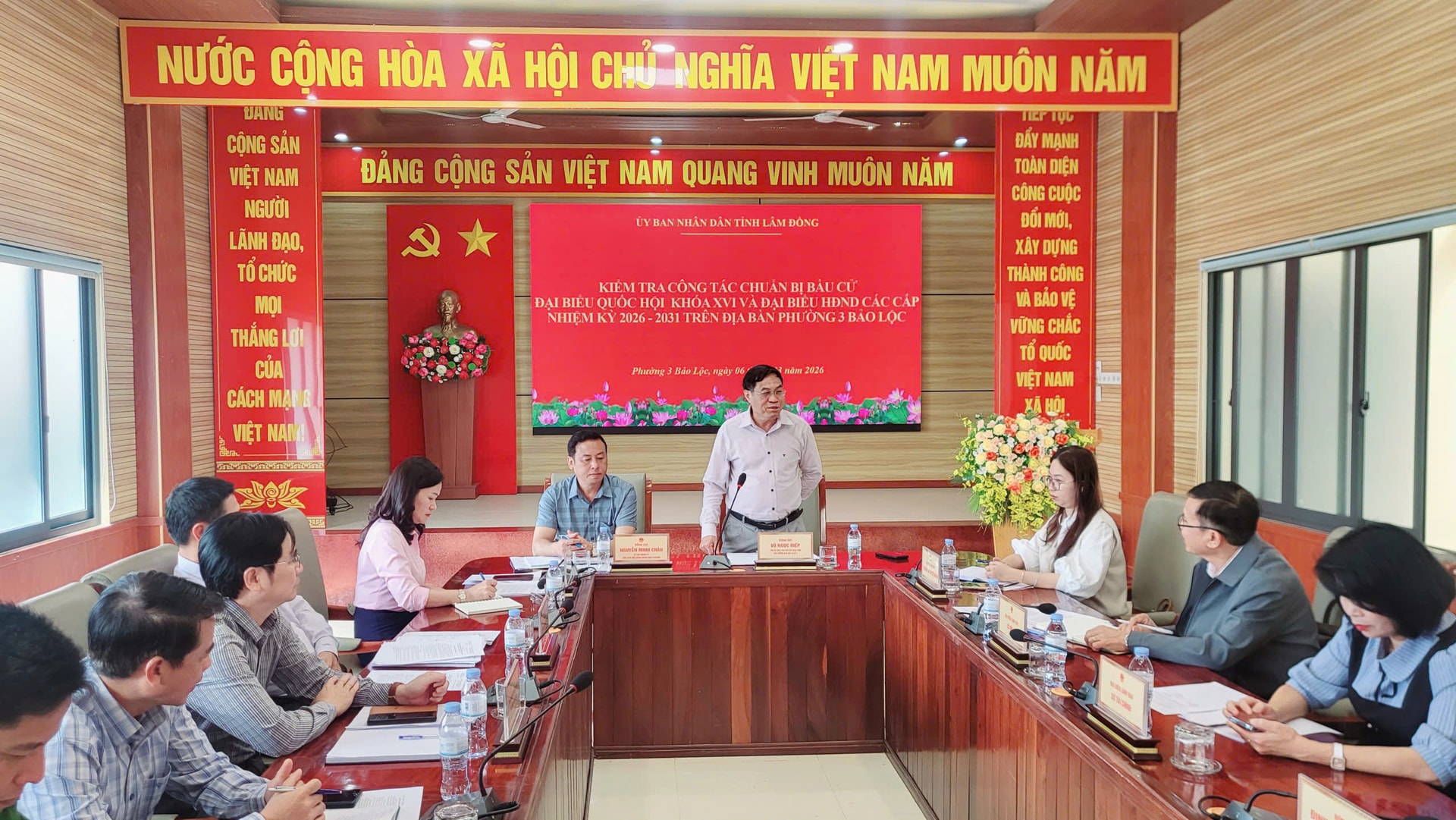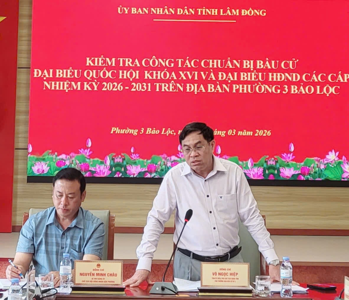 Đồng chí Võ Ngọc Hiệp, Phó Chủ tịch UBND tỉnh đánh giá và thống nhất cao nhiệm vụ, giải pháp phường 3 Bảo Lộc đề ra để thực hiện cho ngày bầu cử; đánh giá phường 3 Bảo Lộc đã thực hiện đầy đủ, chu đáo, đúng quy định và có kết quả cao. Đồng thời, đề nghị phường 3 Bảo Lộc tiếp tục đẩy mạnh công tác thông tin tuyên truyền; đảm bảo công tác an ninh trật tự trước, trong và sau bầu cử; bảo đảm khai mạc bầu cử đúng giờ, kết thúc đúng giờ, bầu đúng, bầu đủ; tiếp tục rà soát các khu vực bầu cử, nhân sự các tổ bầu cử.