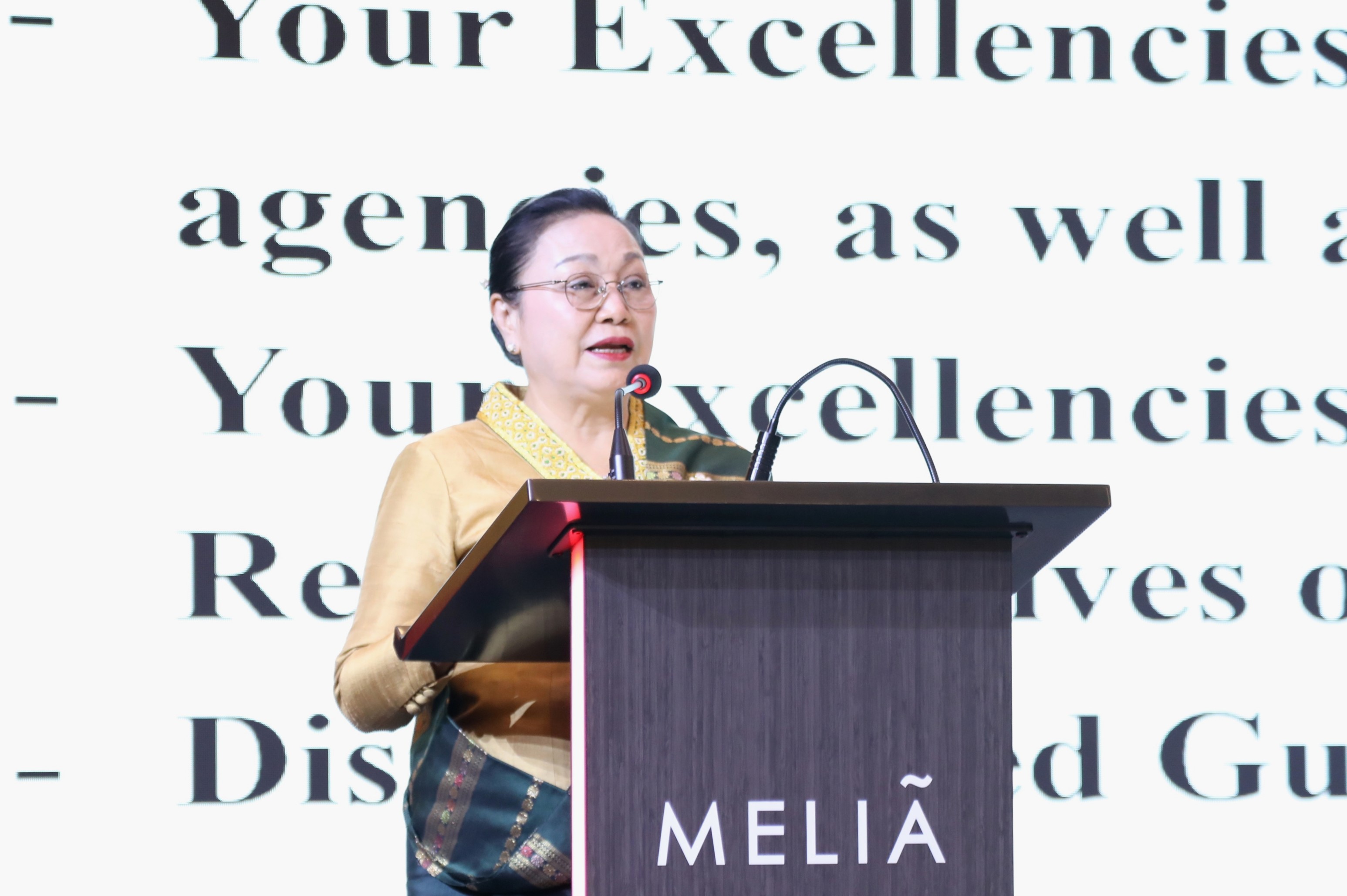 Bà Khamphao Ernthavanh, Đại sứ đặc mệnh toàn quyền nước Cộng hòa Dân chủ Nhân dân Lào tại Việt Nam phát biểu.