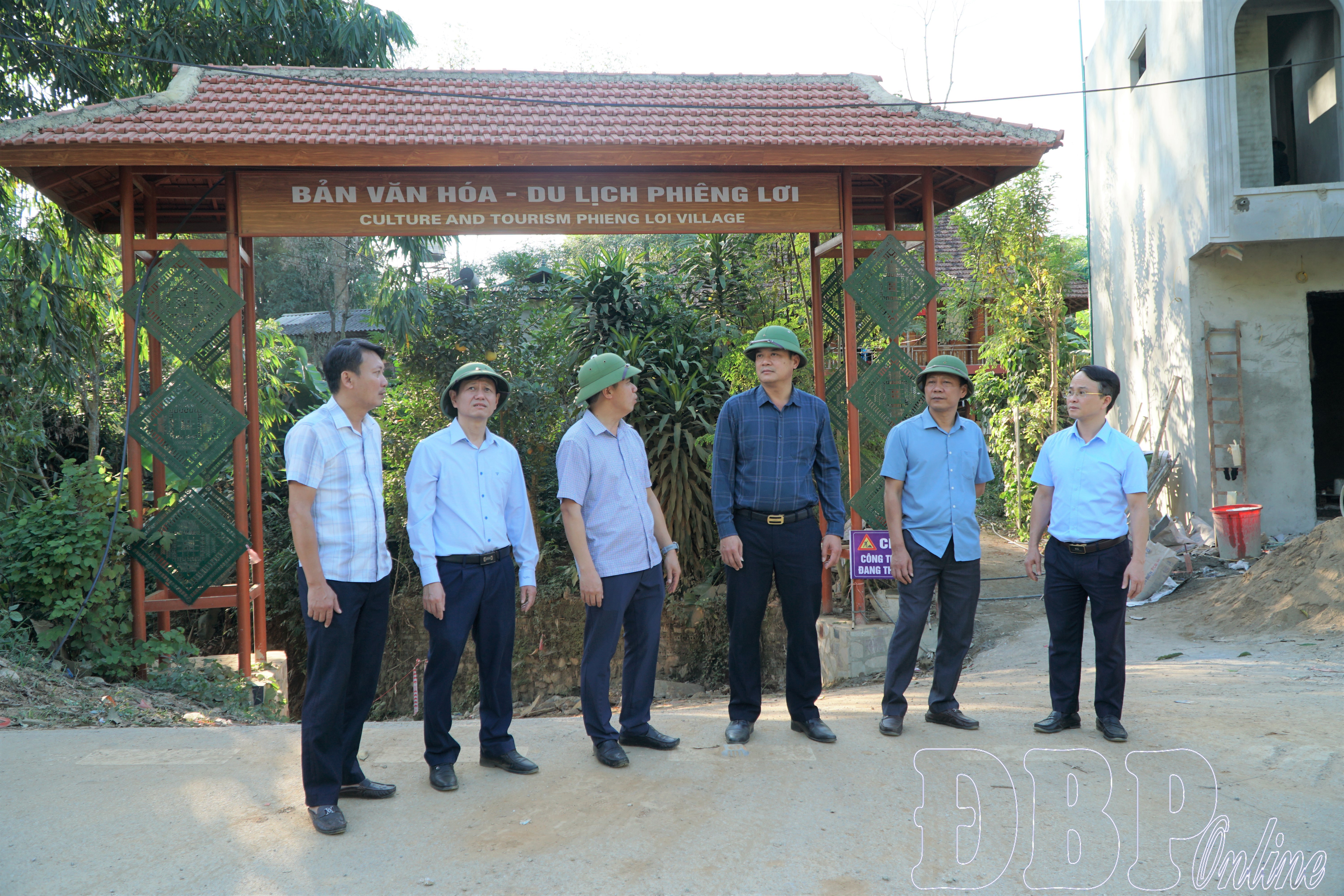 Phó Chủ tịch UBND tỉnh Lò Văn Cương cùng các thành viên trong đoàn đã đến khảo sát công tác thi công nâng cấp, mở rộng tuyến đường bê tông vào bản Phiêng Lơi; công tác chỉnh trang, sơn bảo dưỡng cầu treo; xây dựng kè chống sạt lở và không gian sinh hoạt, trưng bày sản phẩm văn hóa đặc trưng.