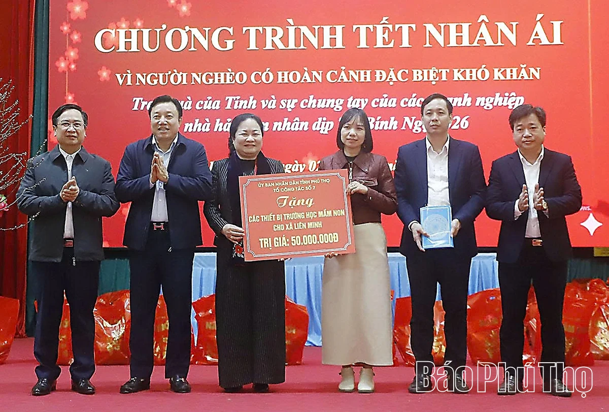 Đồng chí Phó Chủ tịch UBND tỉnh Nguyễn Huy Ngọc cùng đoàn công tác đã thăm và tặng quà cho mẹ Việt Nam Anh hùng Trần Thị Tấm, 101 tuổi, tại khu 4 xã Liên Minh. Tại chương trình, Tổ công tác số 7 đã trao 124 suất quà Tết cho các hộ nghèo, mỗi suất trị giá 1,3 triệu đồng gồm gạo và tiền mặt; 35 suất quà cho các hộ nghèo, mỗi suất trị giá 500 nghìn đồng; đồng thời trao các thiết bị trường học trị giá 50 triệu đồng cho Trường Mầm non Lương Lỗ, xã Liên Minh.