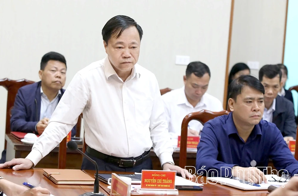Đồng chí Nguyễn Chí Thắng, Bí thư Đảng ủy, Chủ tịch HĐND xã phát biểu tại buổi làm việc.