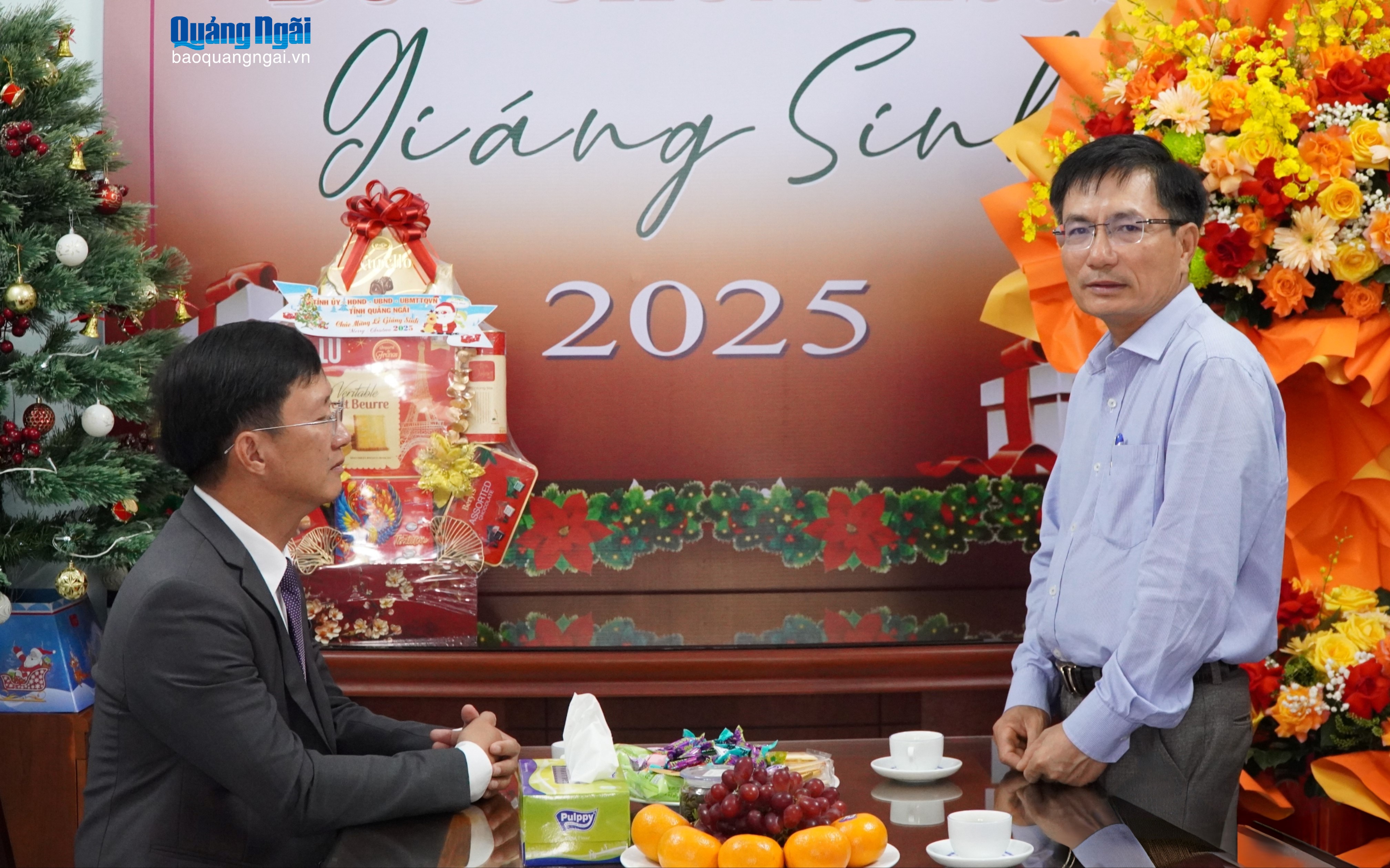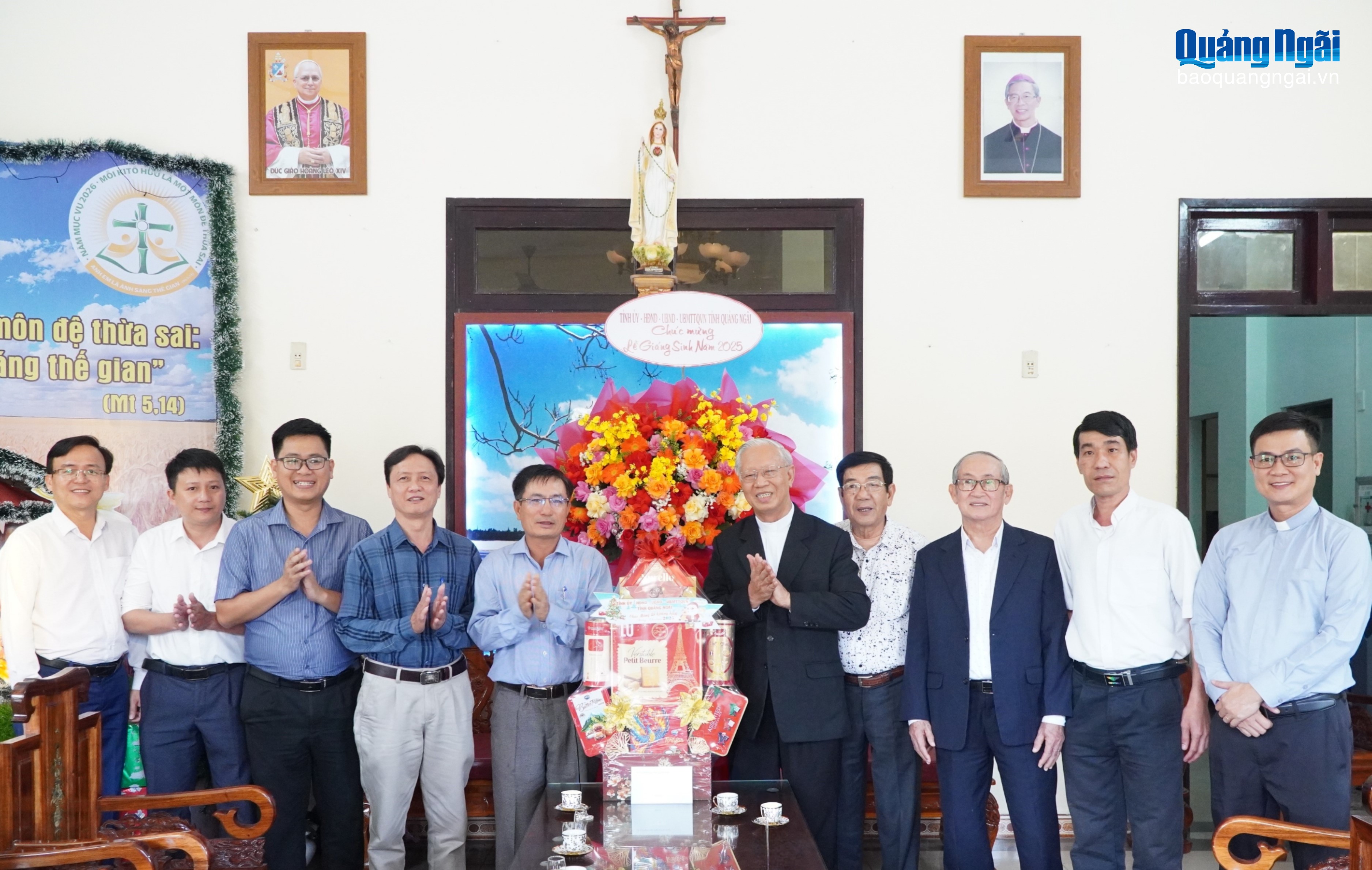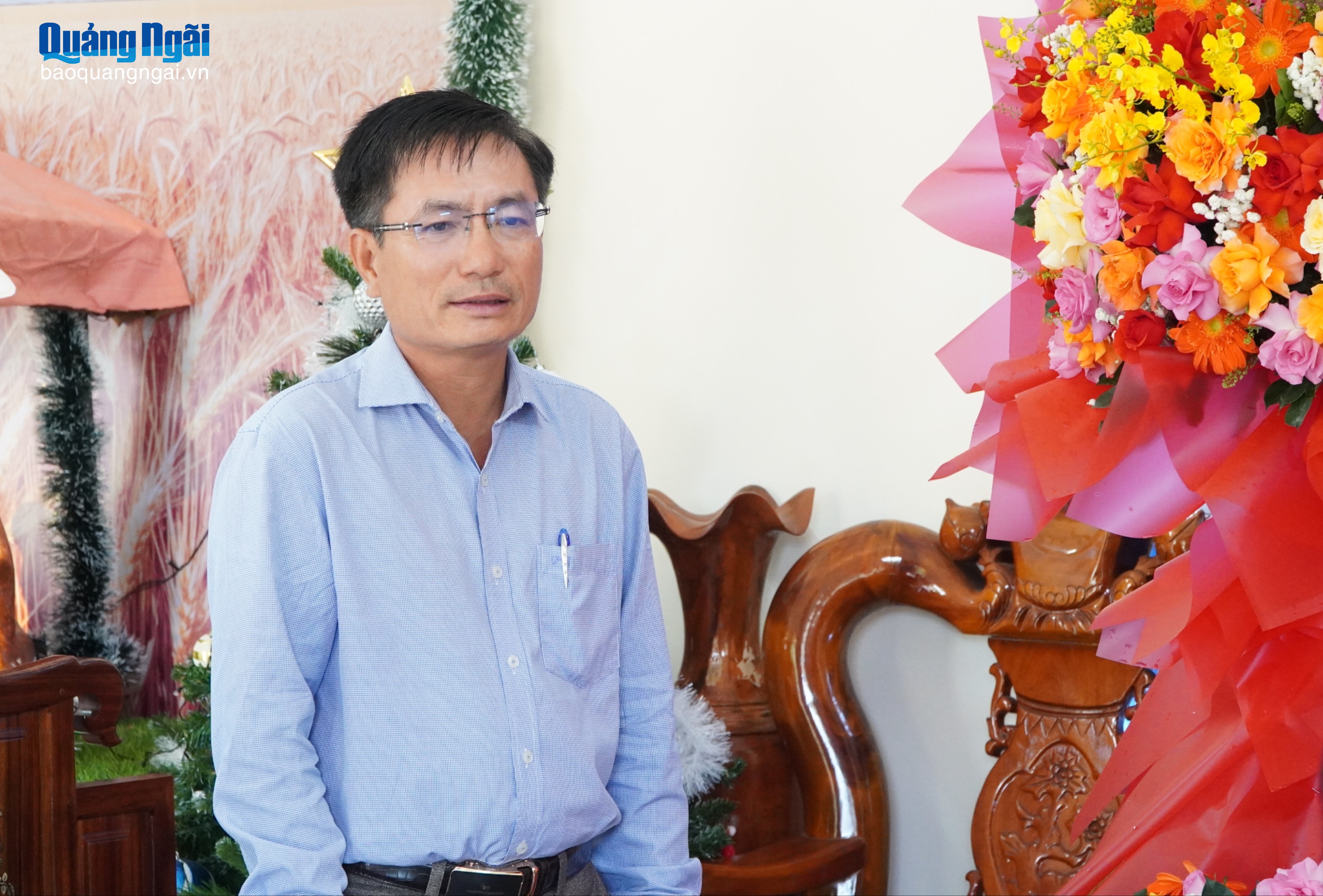 Tại Hạt Công giáo Quảng Ngãi, nơi có 11 giáo xứ với trên 11,6 nghìn giáo dân, Phó Chủ tịch UBND tỉnh Nguyễn Ngọc Sâm thăm, chúc mừng Linh mục Văn Ngọc Anh - Hạt trưởng Hạt Công giáo Quảng Ngãi cùng các chức sắc, giáo dân.