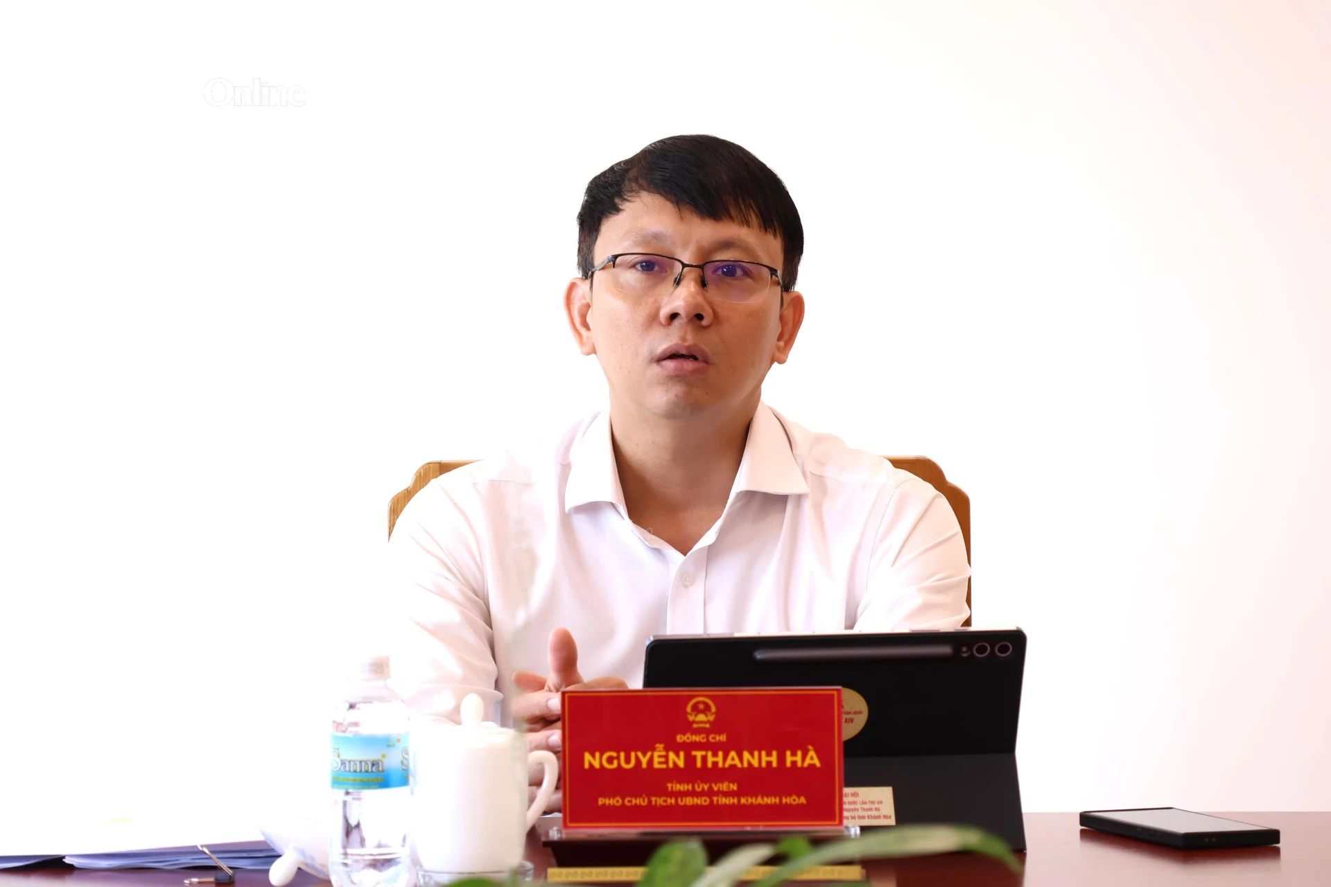 Đồng chí Nguyễn Thanh Hà - Phó Chủ tịch UBND tỉnh Khánh Hòa phát biểu tại cuộc họp.