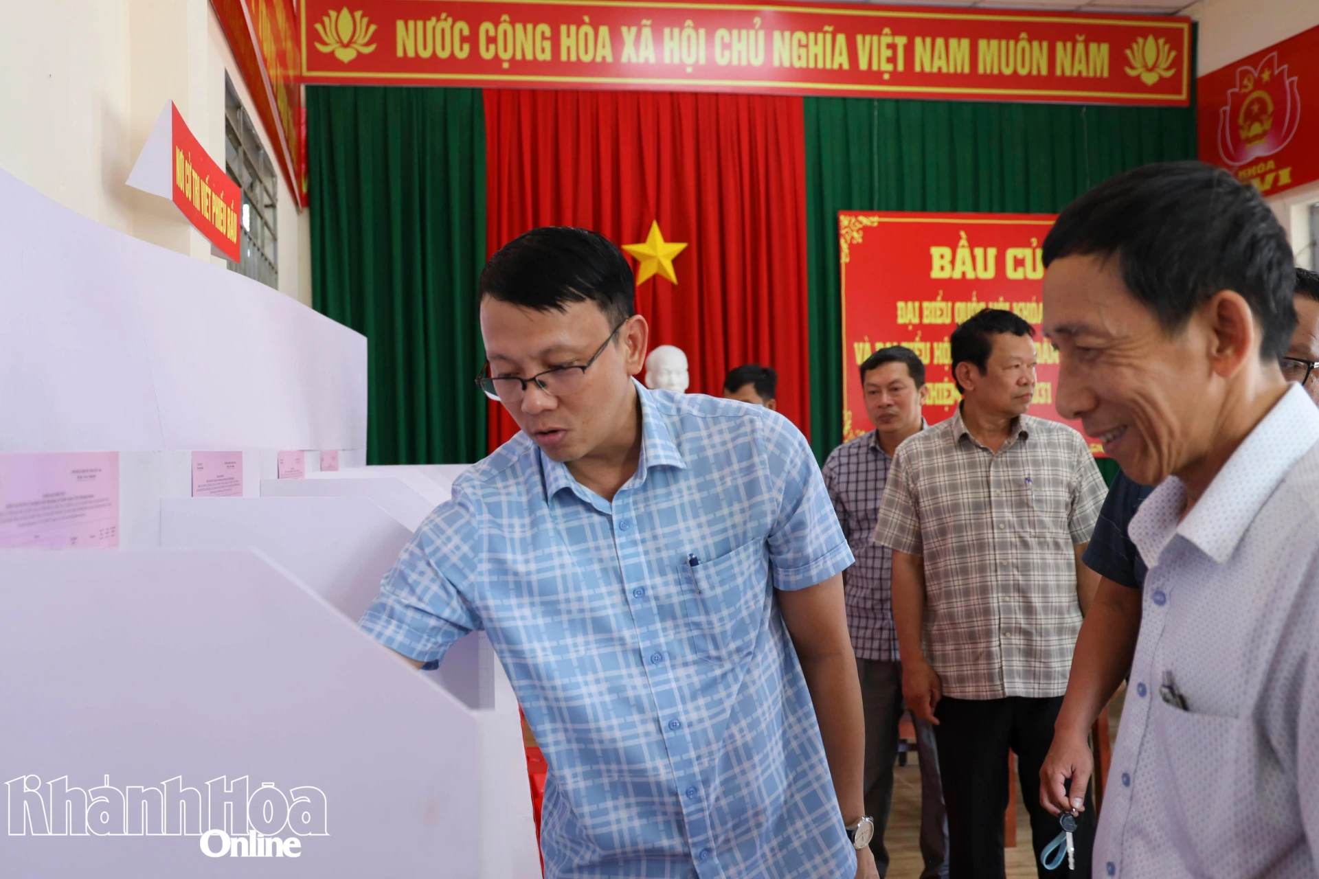 Phó Chủ tịch UBND tỉnh Nguyễn Thanh Hà kiểm tra khu vực viết phiếu bầu của cử tri.