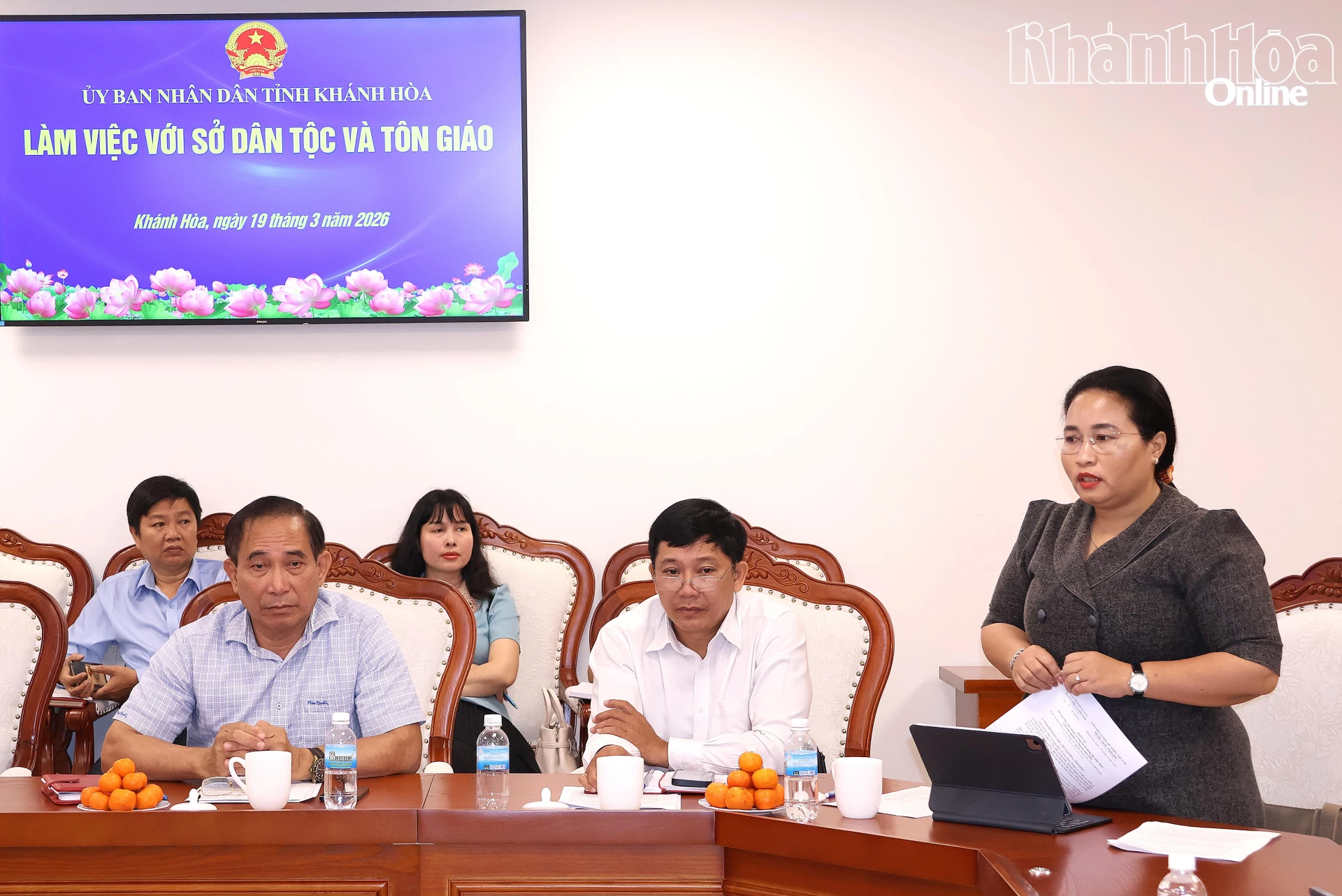 Lãnh đạo Sở Dân tộc và Tôn giáo báo cáo tại buổi làm việc.
