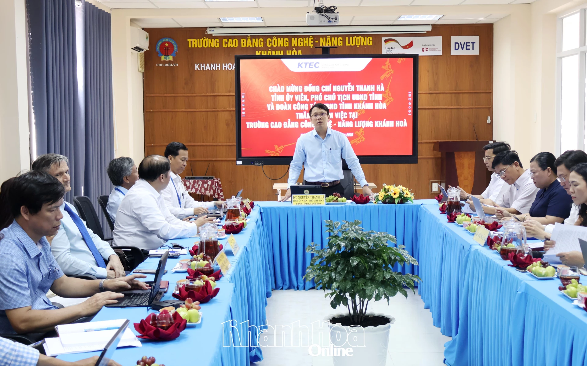 Chiều 3-3, đồng chí Nguyễn Thanh Hà - Phó Chủ tịch UBND tỉnh Khánh Hòa đến thăm, làm việc với Trường Cao đẳng Công nghệ - Năng lượng Khánh Hòa. Dự buổi làm việc có lãnh đạo một số sở, ngành liên quan.