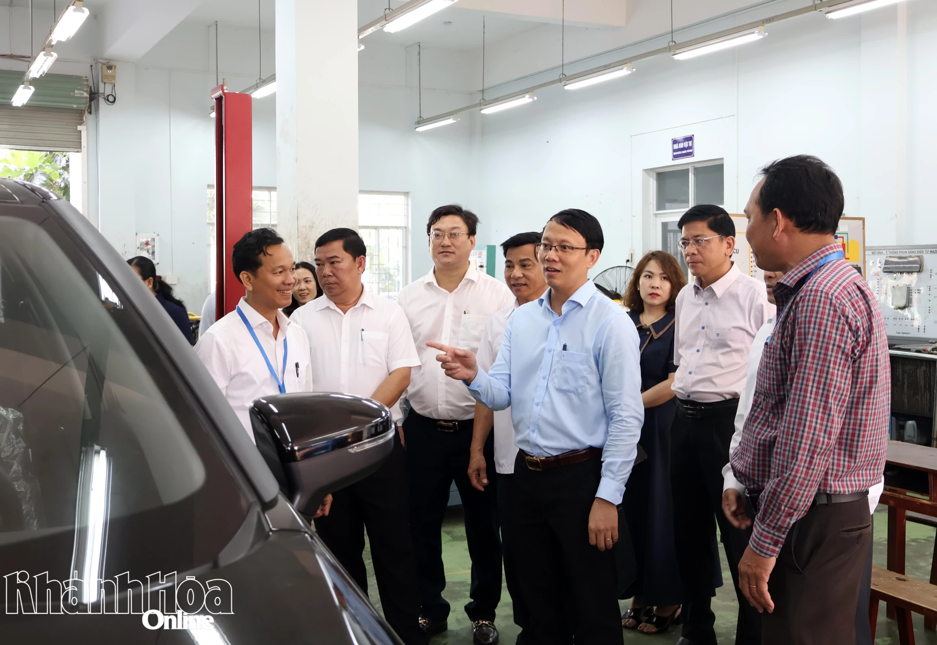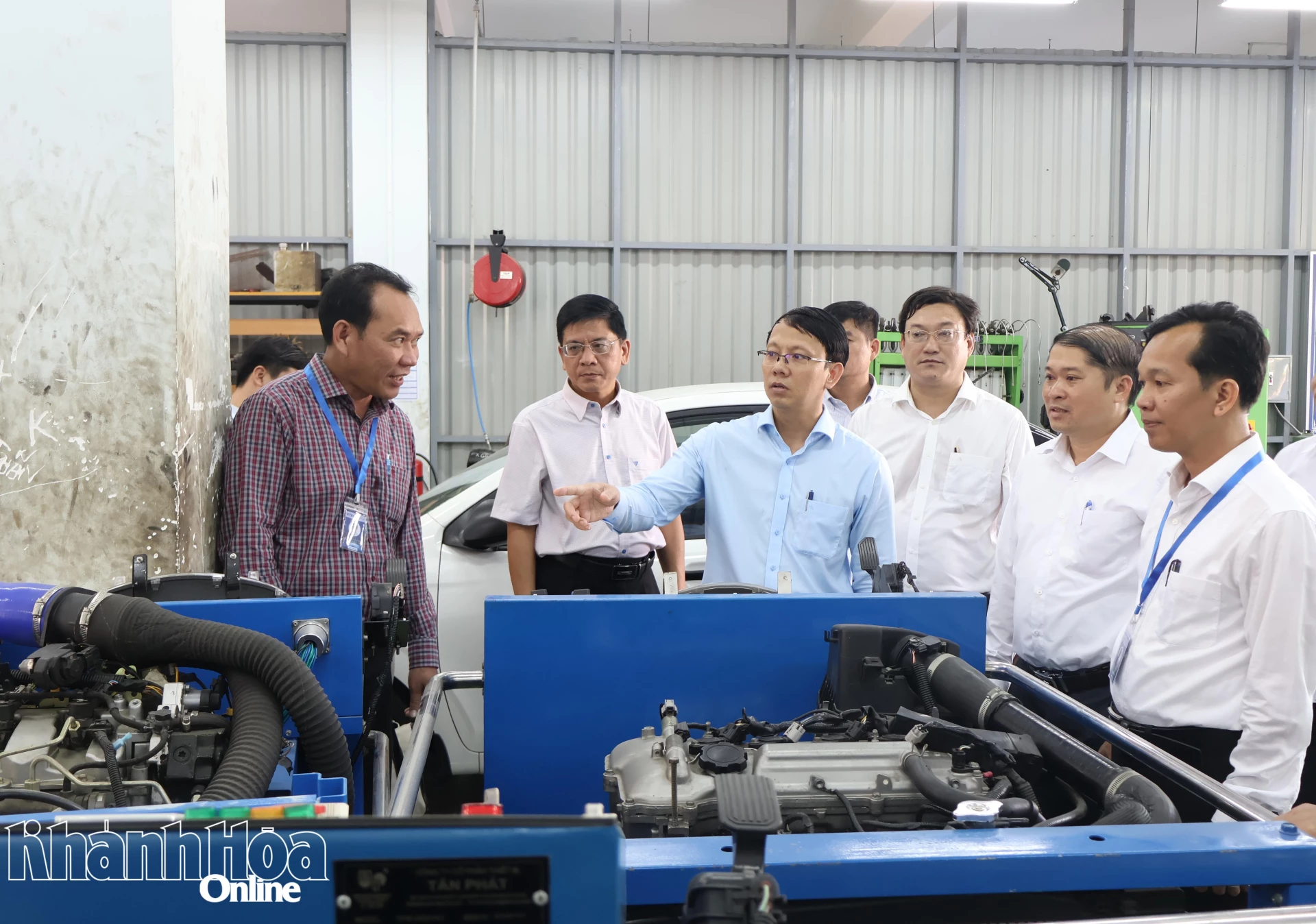 Đồng chí Nguyễn Thanh Hà tham quan xưởng thực hành của trường.
