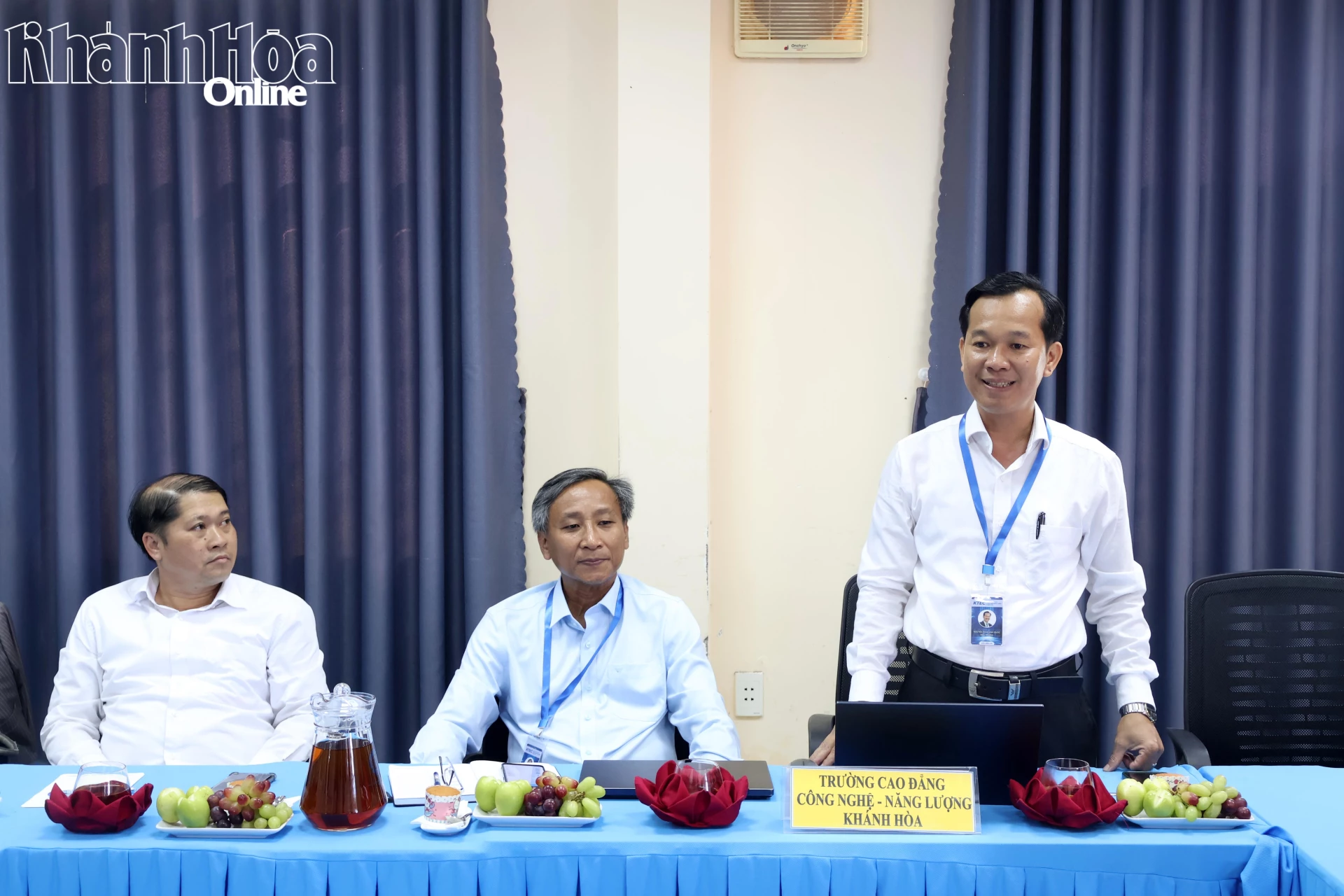 Lãnh đạo Trường Cao đẳng Công nghệ - Năng lượng Khánh Hòa báo cáo tại buổi làm việc.