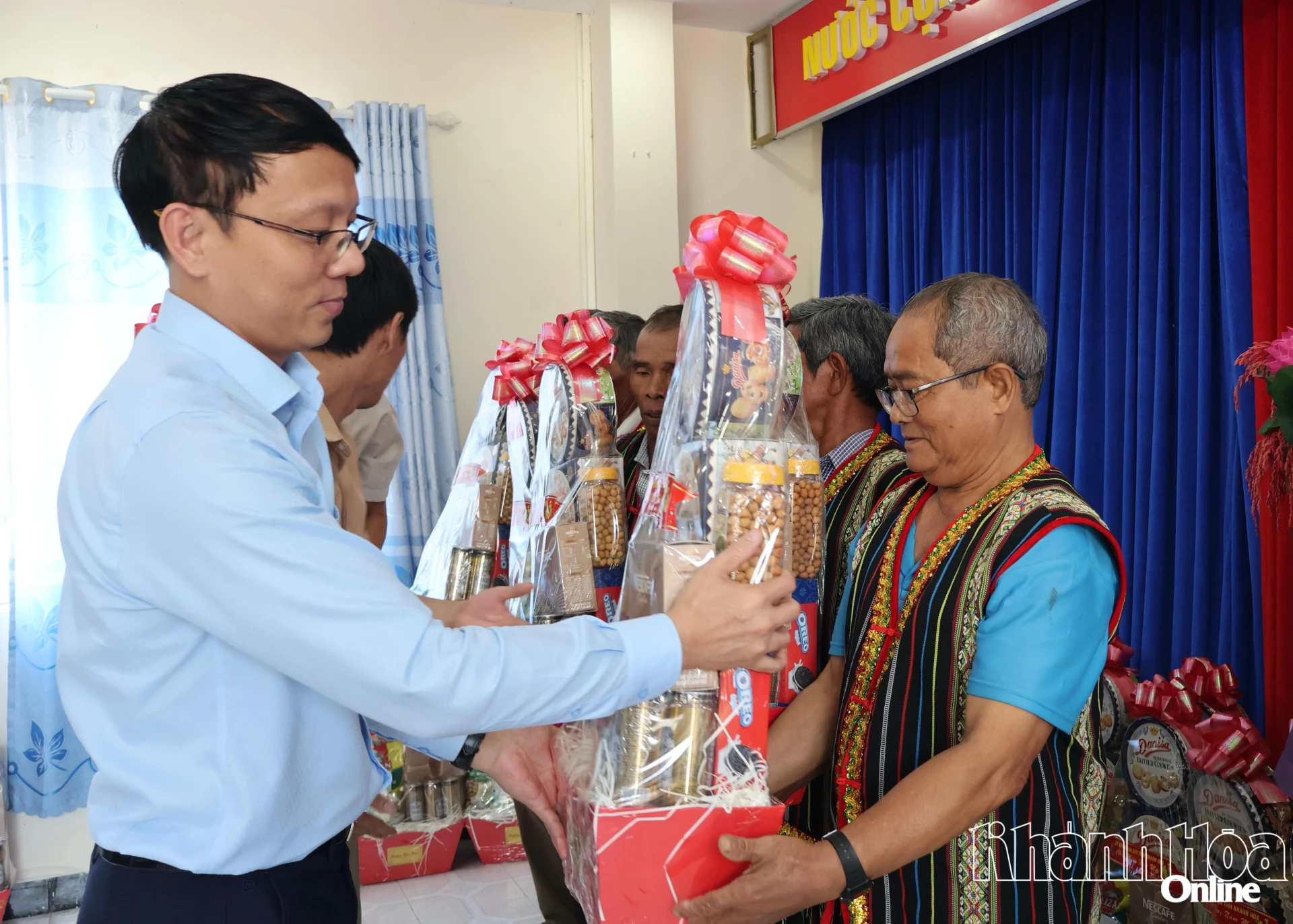 Đồng chí Nguyễn Thanh Hà tặng quà cho người có uy tín ở 5 xã khu vực Khánh Vĩnh.