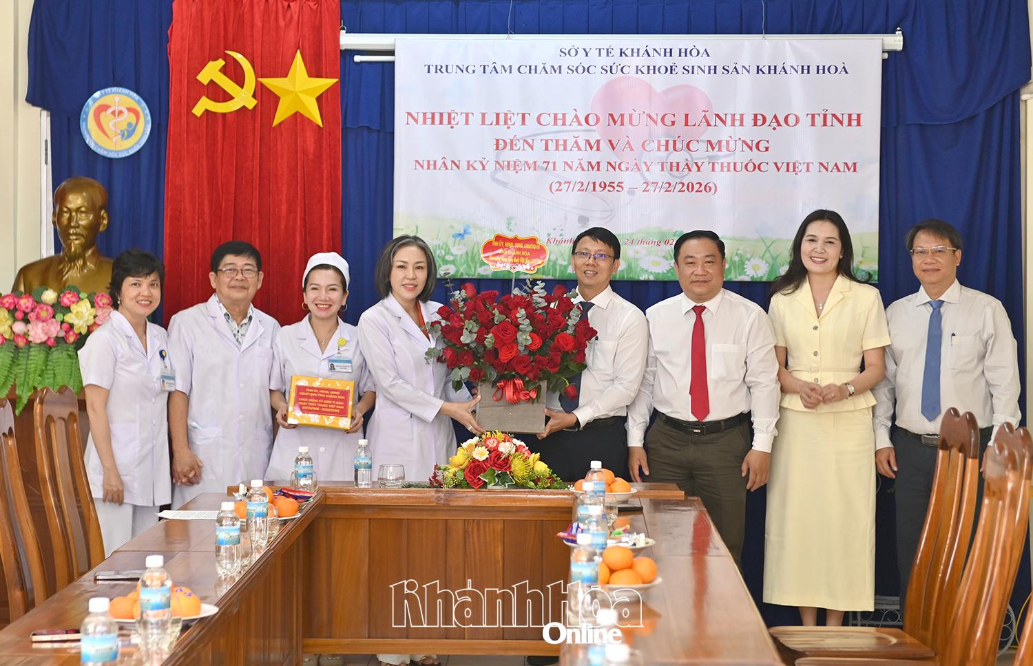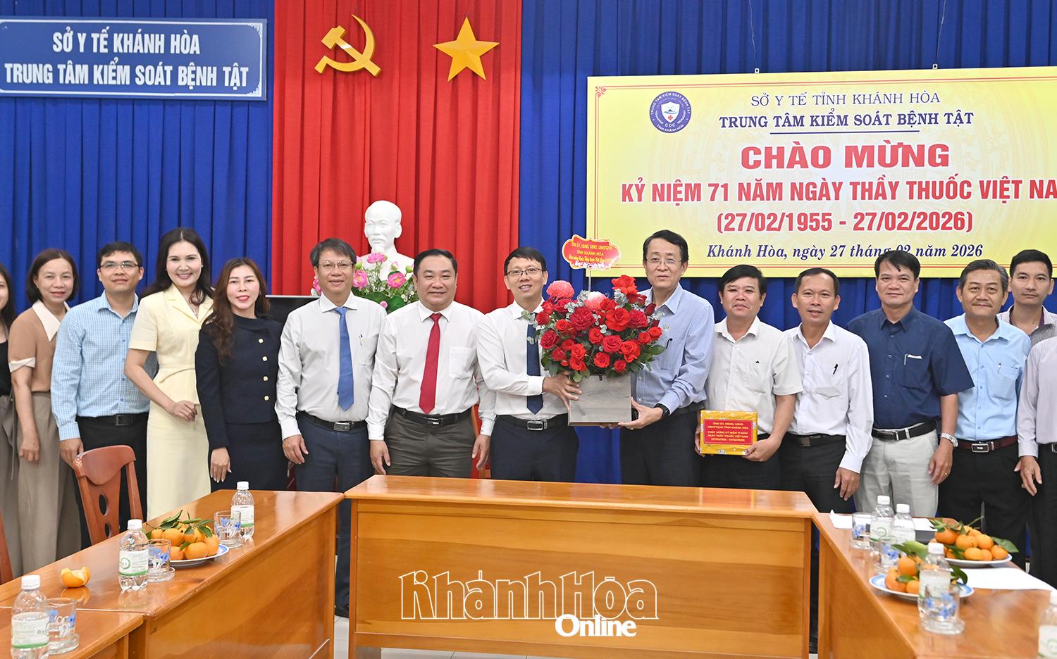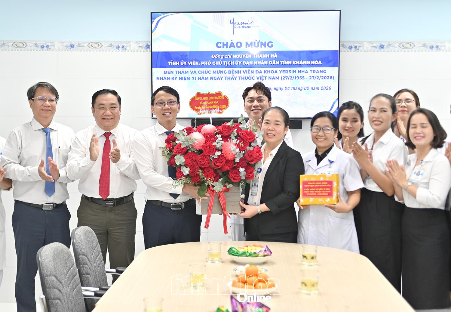 Nhân kỷ niệm 71 năm Ngày Thầy thuốc Việt Nam (27-2-1955 - 27-2-2026), sáng 24-2, đồng chí Nguyễn Thanh Hà - Phó Chủ tịch UBND tỉnh Khánh Hòa đến thăm, chúc mừng các cơ sở y tế gồm: Trung tâm Chăm sóc sức khỏe sinh sản Khánh Hòa, Trung tâm Kiểm soát bệnh tật tỉnh, Bệnh viện Đa khoa Yersin Nha Trang.