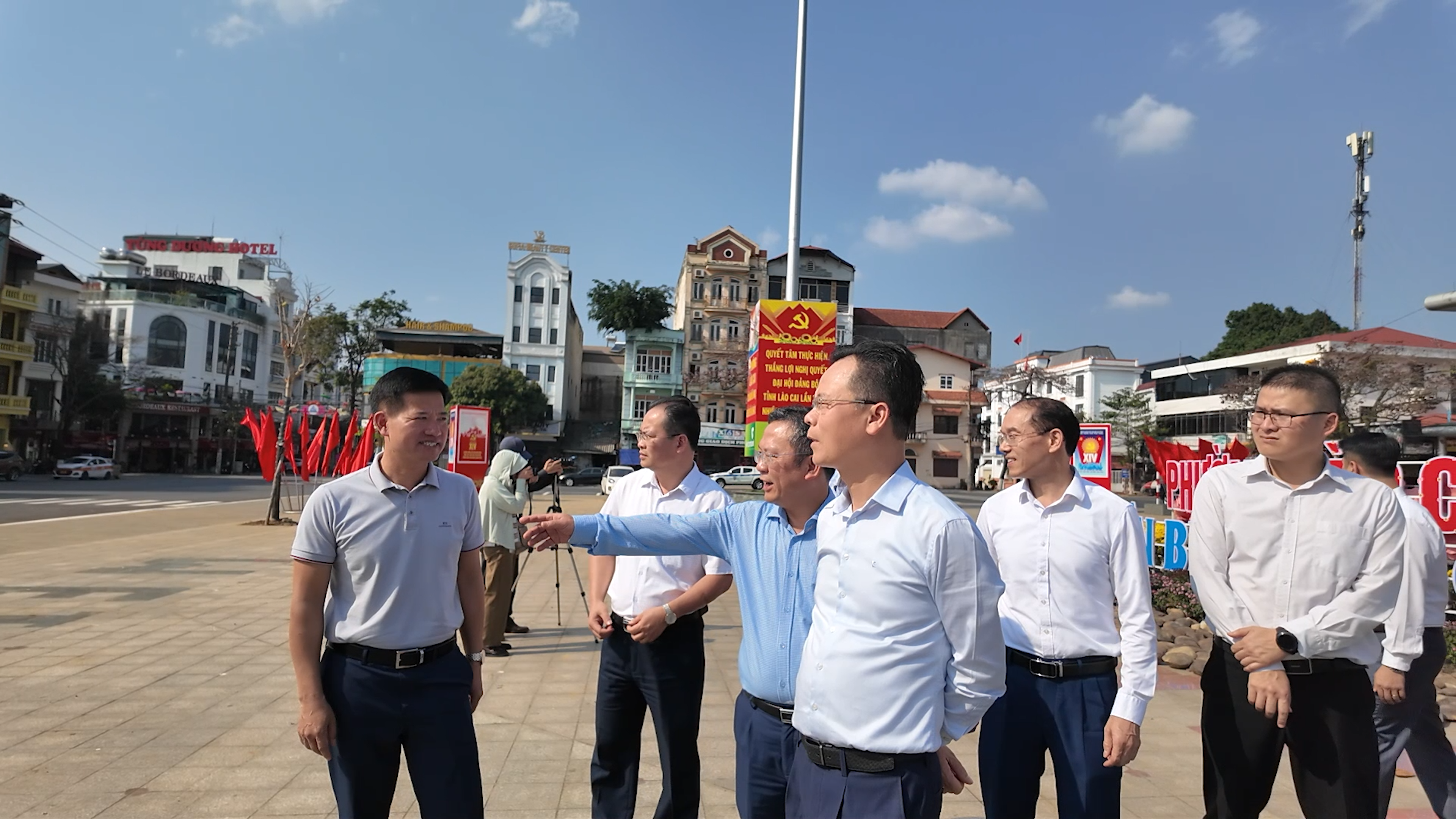 Đồng chí Nguyễn Thành Sinh - Phó Chủ tịch UBND tỉnh kiểm tra trang trí, trật tự, môi trường đường phố tại Ga Lào Cai, phường Kim Tân.