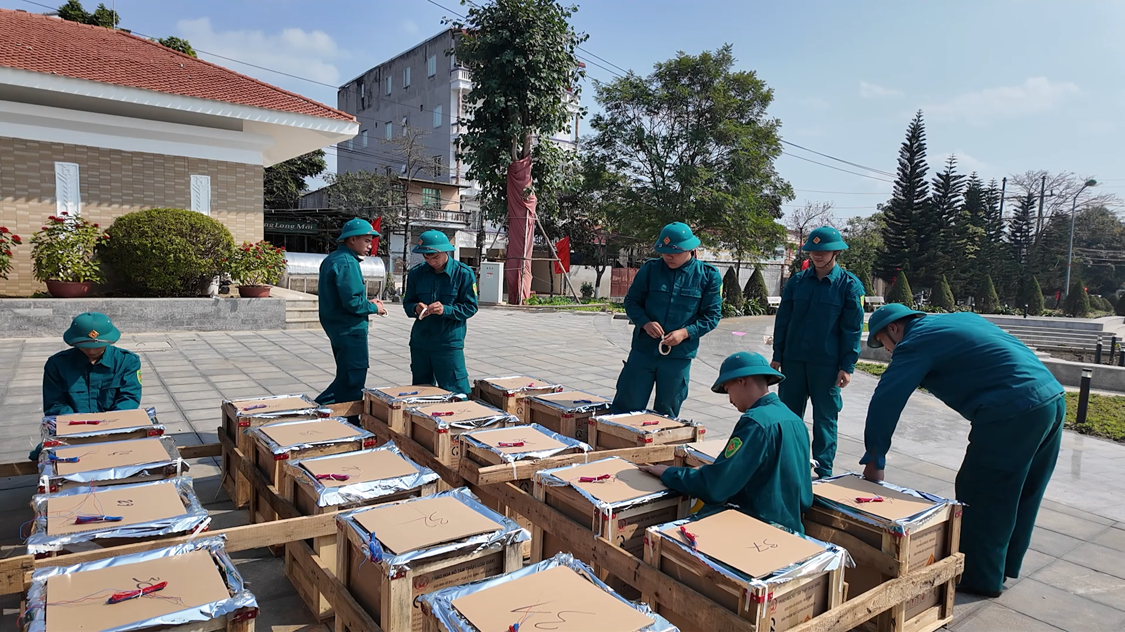 Các lực lượng thực hiện nhiệm vụ bắn pháo hoa chuẩn bị pháo hoa bắn tại Công viên Hồ Chí Minh, phường Lào Cai.