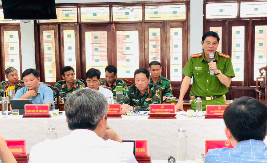 Lãnh đạo Công an tỉnh Gia Lai báo cáo công tác phối hợp giữa Công an tỉnh và chính quyền các phường phòng chống bão Kalmaegi. Ảnh: Phi Long