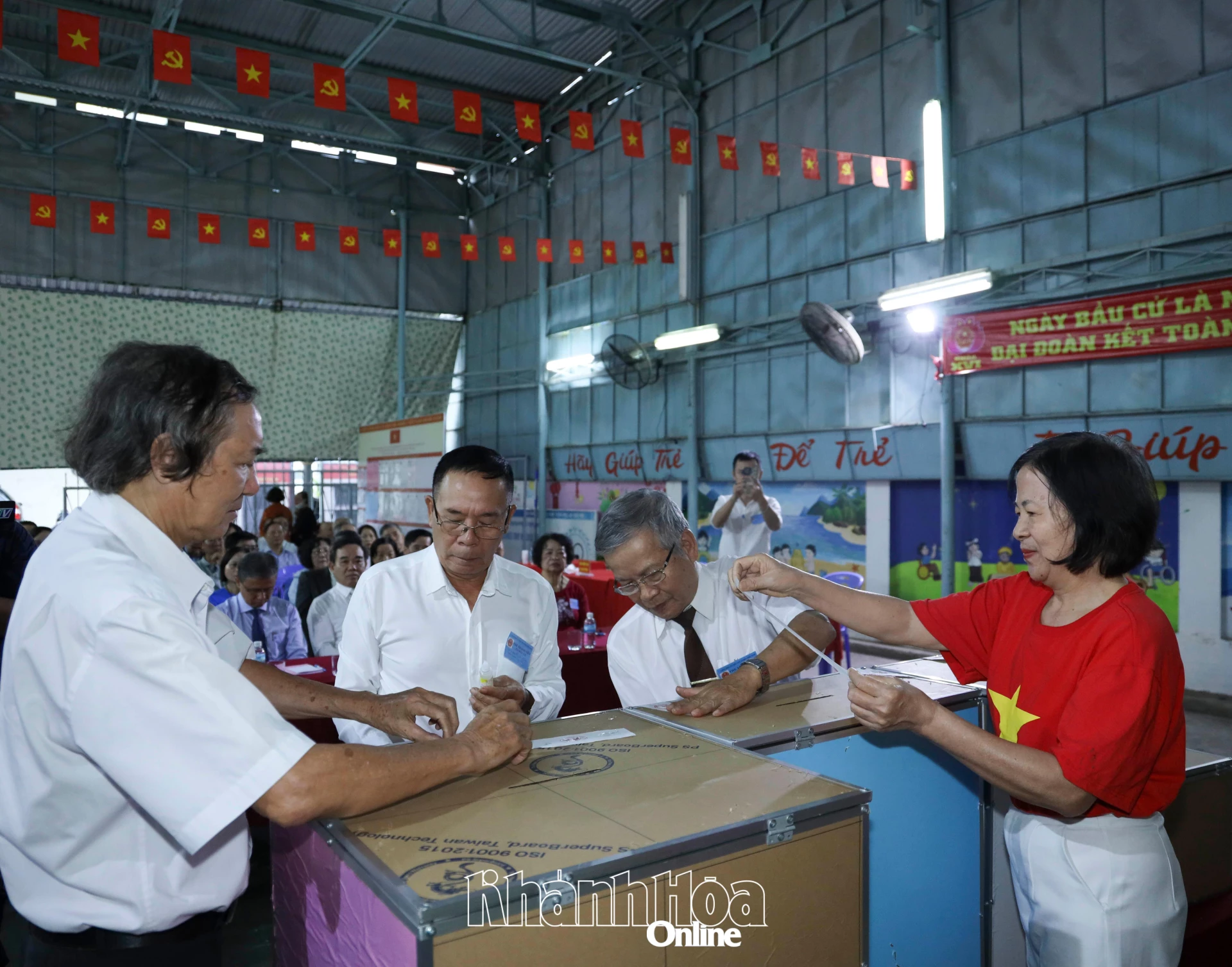 Sau khi bỏ phiếu, cử tri đến bàn đóng dấu xác nhận bỏ phiếu.