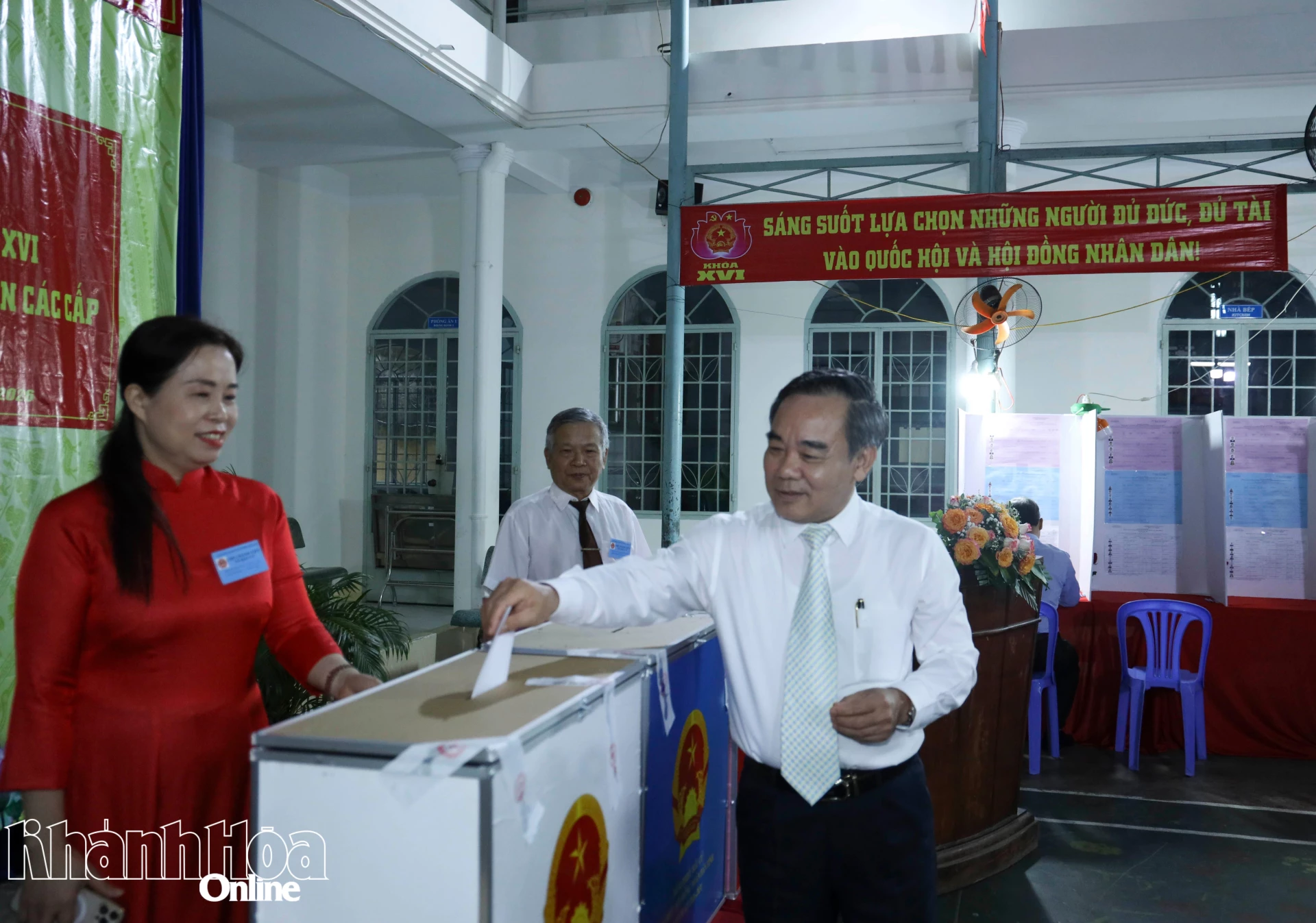 Sáng 15-3, đồng chí Trần Hòa Nam - Ủy viên Ban Thường vụ Tỉnh ủy, Phó Chủ tịch UBND tỉnh đến dự lễ khai mạc và bỏ phiếu tại Khu vực bỏ phiếu số 36 - Trung tâm Phục hồi chức năng, giáo dục trẻ em khuyết tật (phường Nha Trang). Cùng dự lễ có đồng trí Lê Hữu Trí - Phó Trưởng đoàn chuyên trách phụ trách Đoàn Đại biểu Quốc hội tỉnh, Phó Chủ tịch Ủy ban Bầu cử tỉnh.