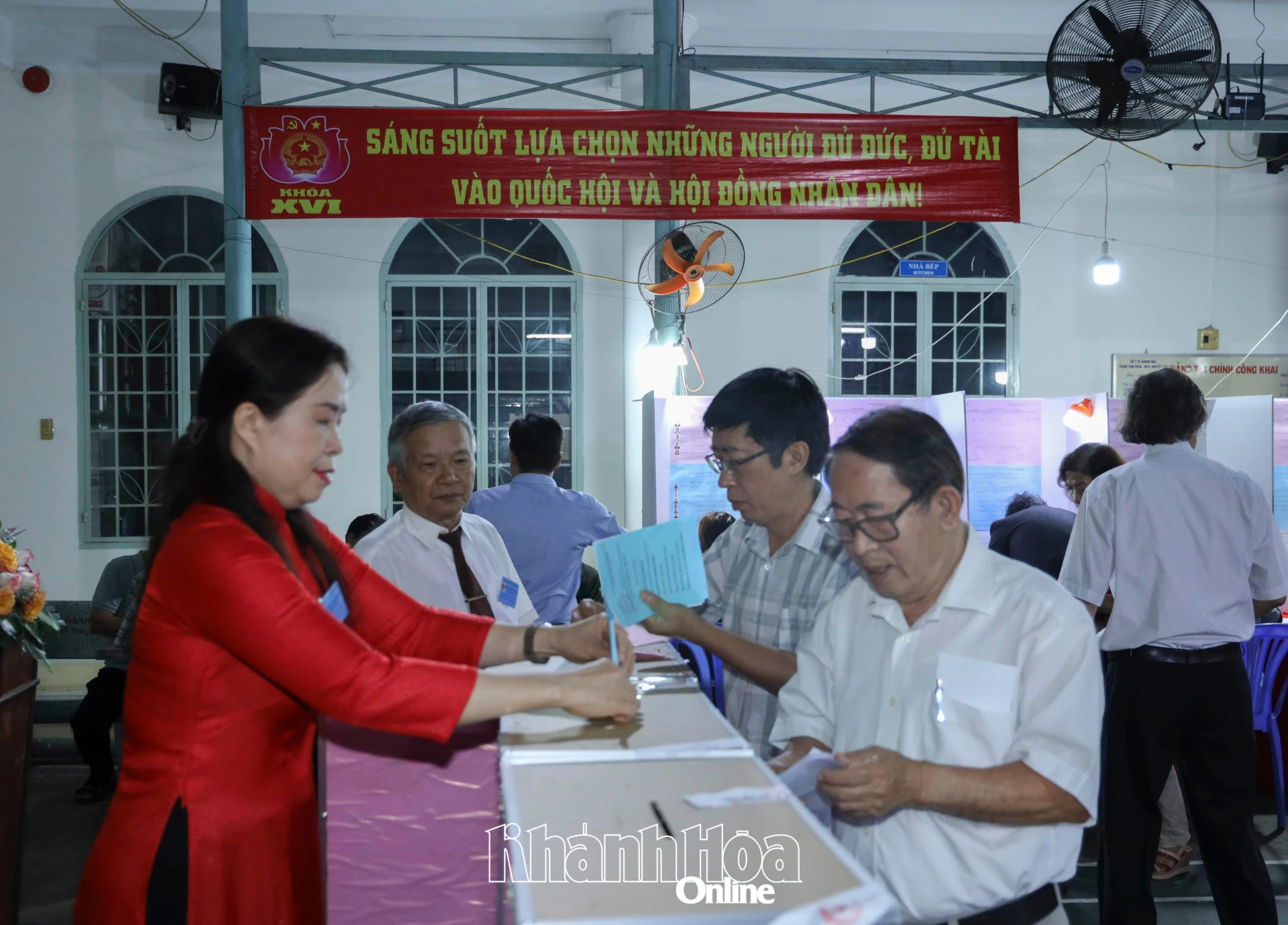 Phát phiếu bầu cho cử tri.