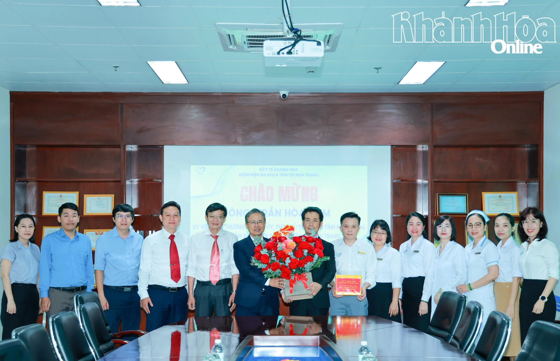 Đồng chí Trần Hòa Nam tặng hoa chúc mừng Bệnh viện Đa khoa Tâm Trí Nha Trang.