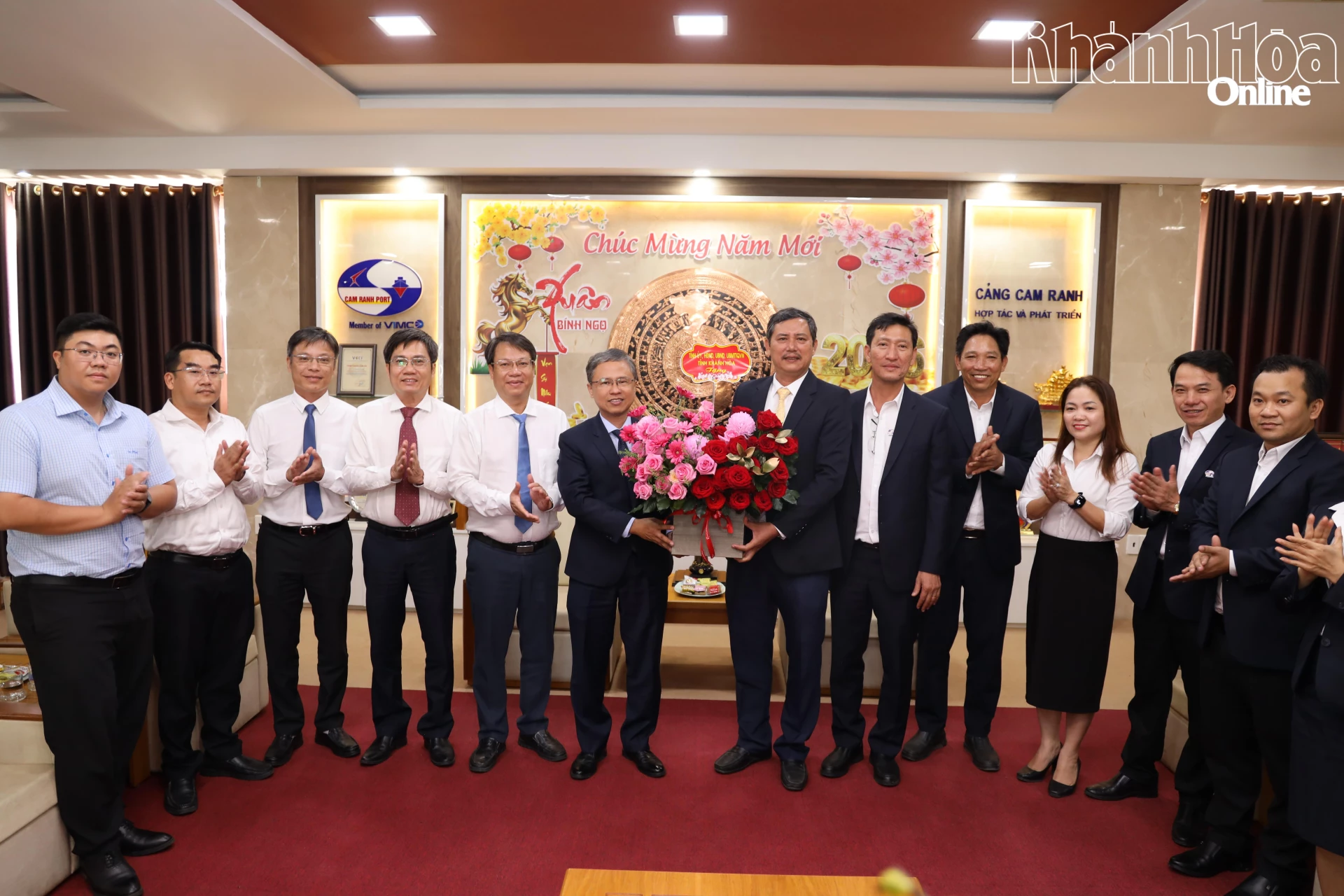 Đồng chí Trần Hòa Nam tặng hoa chúc mừng năm mới tại Công ty Cổ phần Cảng Cam Ranh.
