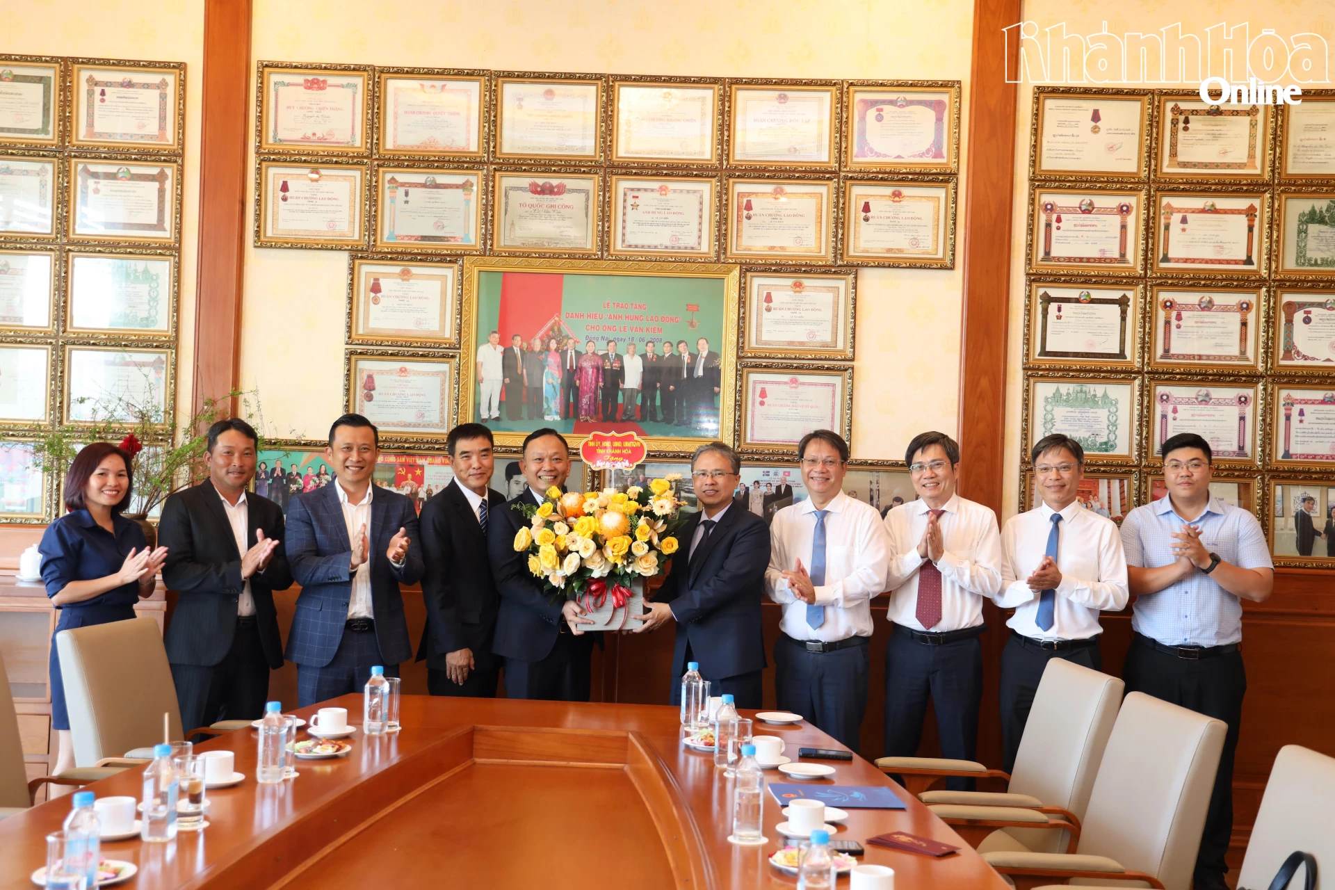 Đồng chí Trần Hòa Nam tặng hoa chúc mừng năm mới Công ty TNHH KN Cam Ranh.