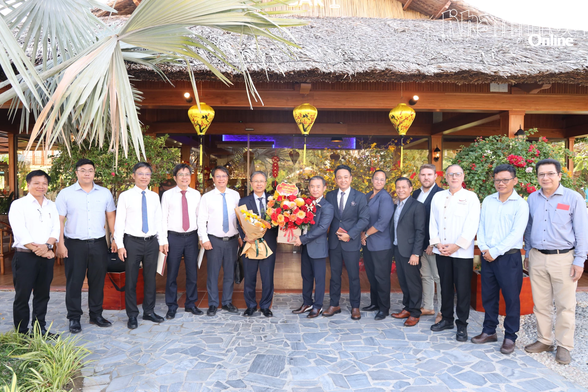 Đồng chí Trần Hòa Nam tặng hoa chúc mừng năm mới Khu nghỉ dưỡng Ana Mandara Cam Ranh.
