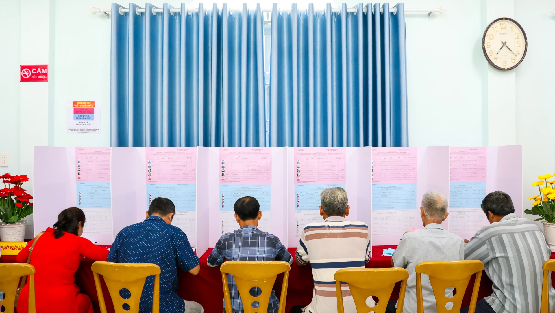 Theo báo cáo, 3 xã ven biển này có hơn 71.000 cử tri. Trong đó, xã Phước Dinh có hơn 23.700 cử tri; xã Ninh Hải hơn 20.700 cử tri và xã Vĩnh Hải hơn 26.700 cử tri. Hoạt động bầu cử tại 3 xã diễn ra trong không khí phấn khởi; cử tri đến các điểm bỏ phiếu từ sớm để thực hiện quyền và nghĩa vụ công dân.