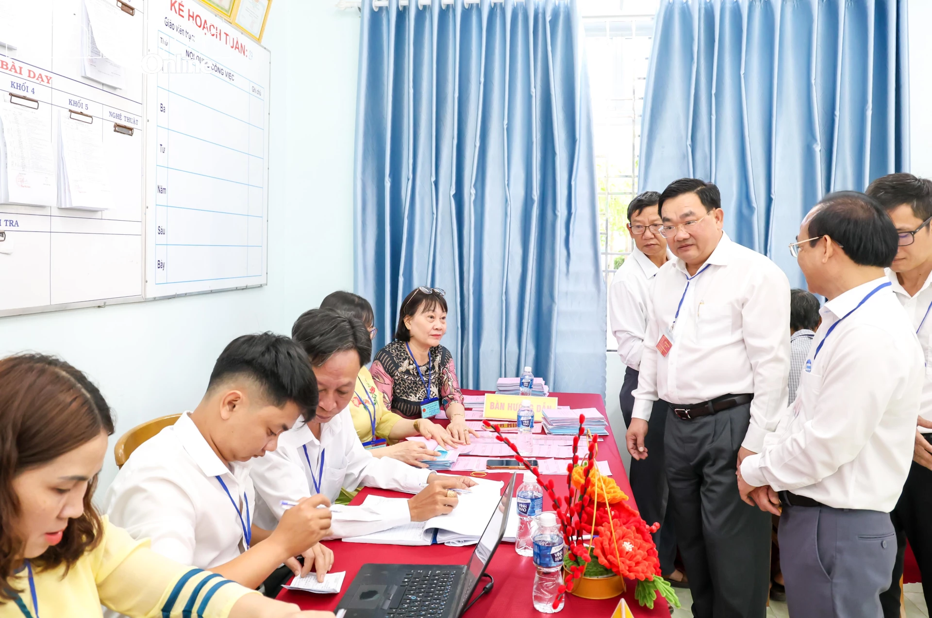 Đồng chí Trịnh Minh Hoàng kiểm tra công tác bầu cử tại Khu vực bỏ phiếu số 12, xã Phước Dinh.