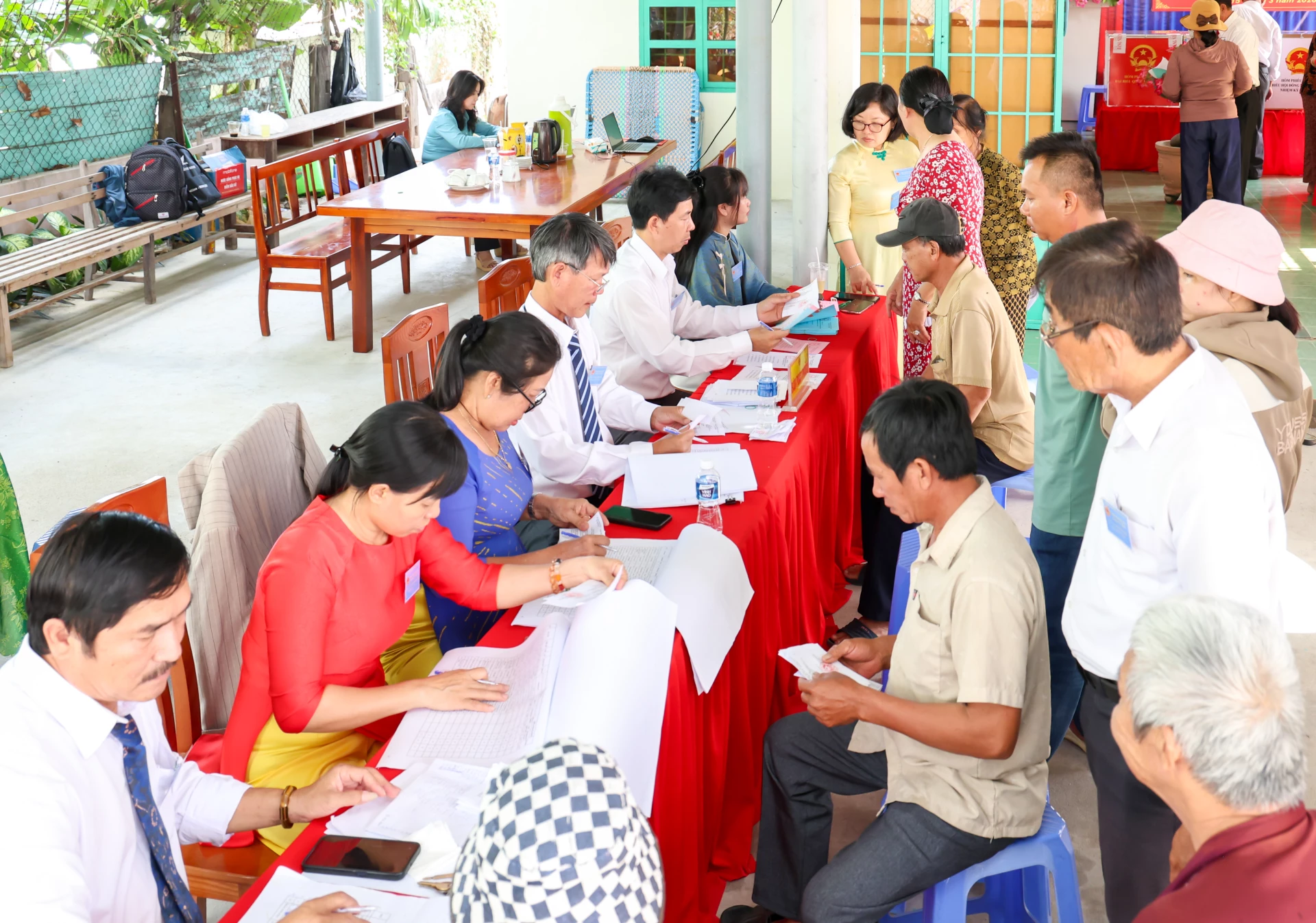 Cử tri thôn An Thạnh 1, xã Phước Dinh tham gia bầu cử.