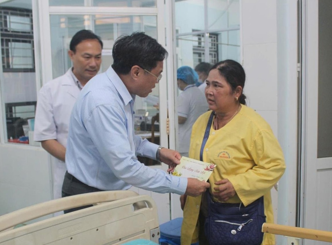 Đồng chí Võ Ngọc Hiệp, Tỉnh ủy viên, Phó Chủ tịch UBND tỉnh Lâm Đồng thăm hỏi, tặng quà thân nhân và bệnh nhân đang được chăm sóc, điều trị tại Bệnh viện Đa khoa Đắk Nông