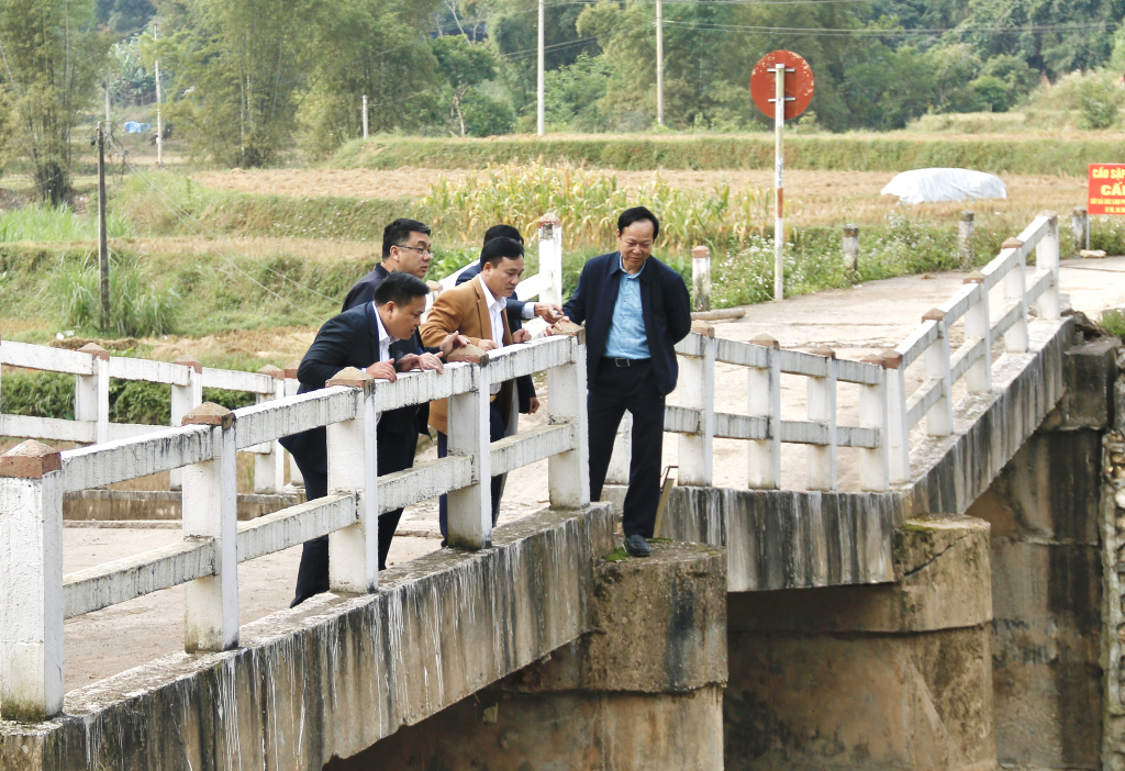 Đoàn công tác trực tiếp khảo sát các cây cầu: Nà Xèn (xóm Nà Xèn), Pác Cung (xóm Nà Kẻ), Khuổi Đuốc (xóm Chông Cá). Tại mỗi điểm, đoàn kiểm tra mức độ hư hỏng, khả năng đảm bảo an toàn cho người dân, phương án khắc phục trước mắt và lâu dài.