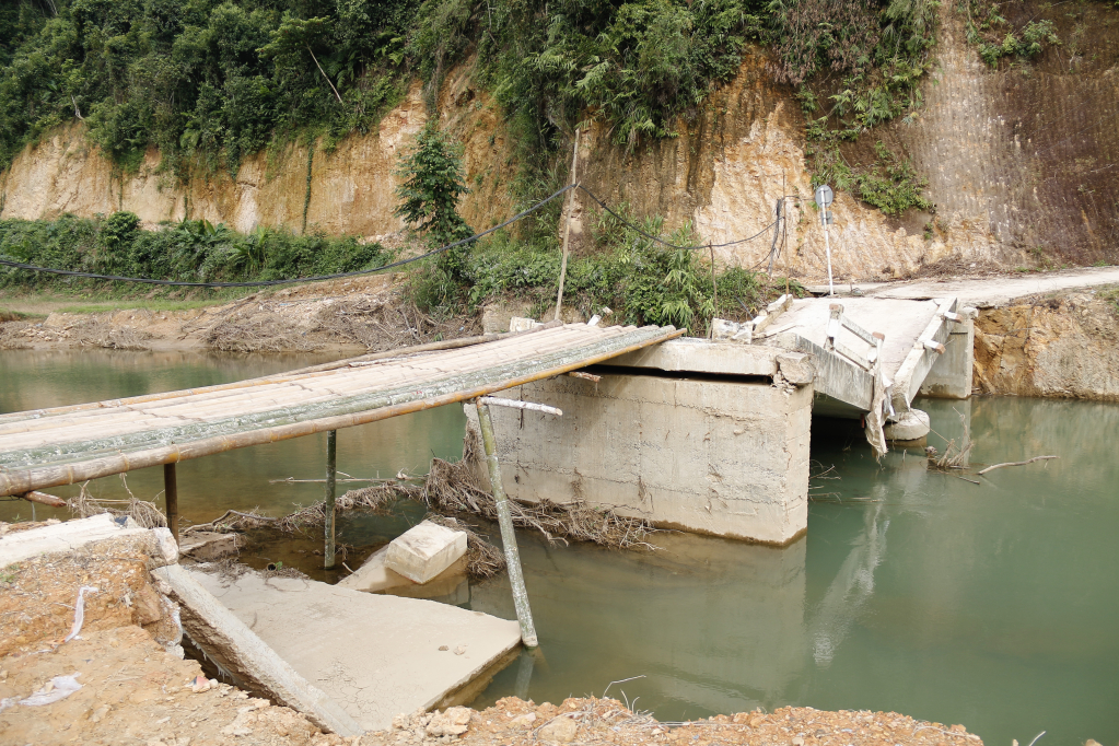 Do ảnh hưởng của 2 cơn bão số 10 và số 11, các cây cầu của xã bị thiệt hại nghiêm trọng, một số mố cầu bị xói mòn, sạt trượt; lan can cầu bị gãy, hỏng. Riêng cầu Khuổi Đuốc có nhịp cầu bị sập hoàn toàn, địa phương đang tạm thời dùng tre để phục vụ đi lại; nhịp tiếp theo của cầu cũng bị gãy, tiềm ẩn nguy cơ mất an toàn.