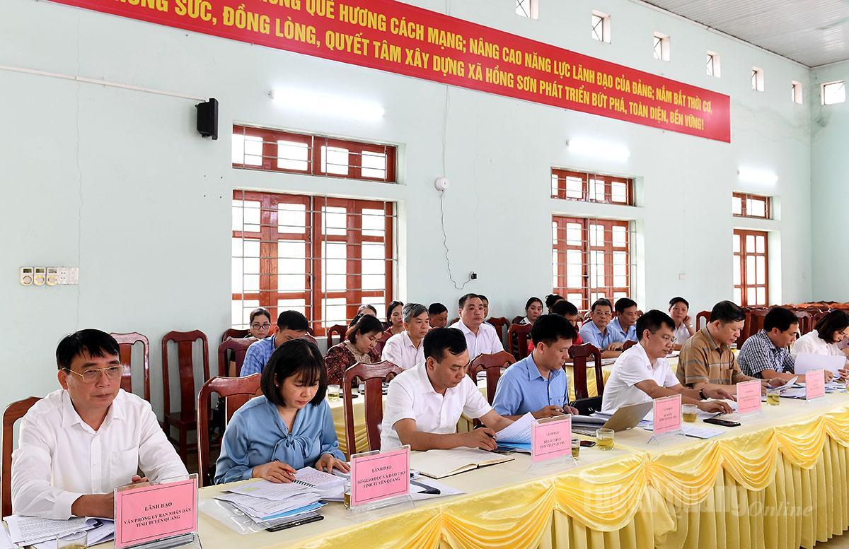 Trước đó, Đoàn công tác đã chia thành các tổ tiến hành kiểm tra, khảo sát tình hình hoạt động tại các đơn vị, cơ sở y tế, trường học trên địa bàn 2 xã Hồng Sơn và Trường Sinh. Đồng thời nắm bắt những khó khăn, vướng mắc sau khi mô hình chính quyền địa phương 2 cấp đi vào hoạt động.