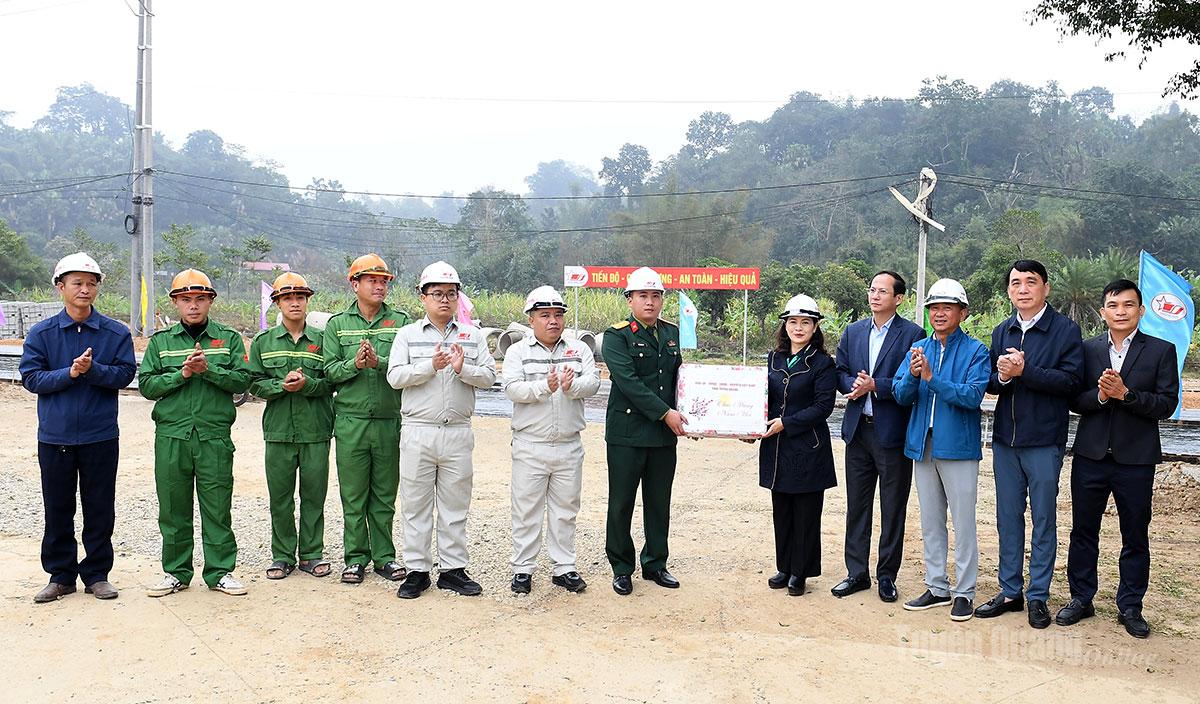 Kiểm tra thực tế tại công trường thi công, đồng chí Phó Chủ tịch UBND tỉnh Vương Ngọc Hà đánh giá cao sự nỗ lực, phối hợp chặt chẽ giữa chủ đầu tư, đơn vị giám sát, nhà thầu thi công và chính quyền địa phương trong triển khai thực hiện dự án, đặc biệt là trong những ngày Tết Nguyên đán Bính Ngọ 2026 nhà thầu đã duy trì ca, kíp làm việc liên tục với tinh thần làm “xuyên lễ, xuyên Tết”. Đồng chí yêu cầu các đơn vị liên quan tiếp tục làm tốt công tác phối hợp, đẩy nhanh tiến độ, kịp thời đề xuất, tháo gỡ ngay những khó khăn, vướng mắc trong quá trình thi công, tập trung nhân lực, máy móc, thiết bị thi công “3 ca, 4 kíp” để hoàn thành theo đúng kế hoạch, thông xe kỹ thuật vào tháng 4-2026 và hoàn thành dự án trước ngày 19-5-2026. Đồng thời nhấn mạnh tuyến đường có ý nghĩa quan trọng phục vụ giao thông đi lại, tạo cảnh quan vùng chiến khu xưa, do đó cần chú ý tạo những điểm nhấn, tạo không gian văn hóa đặc trưng. Đồng chí đặc biệt lưu ý việc đảm bảo các yêu cầu về an toàn, phù hợp với hệ thống hạ tầng sẵn có phục vụ việc đi lại, học tập của học sinh, sinh kế của nhân dân và xây dựng hệ thống công trình phúc lợi xã hội mà tuyến đường đi qua.