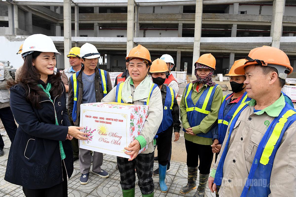 Phó Chủ tịch UBND tỉnh Vương Ngọc Hà tặng quà công nhân, người lao động thi công, thực hiện Dự án xây dựng Bệnh viện Đa khoa tỉnh Tuyên Quang.