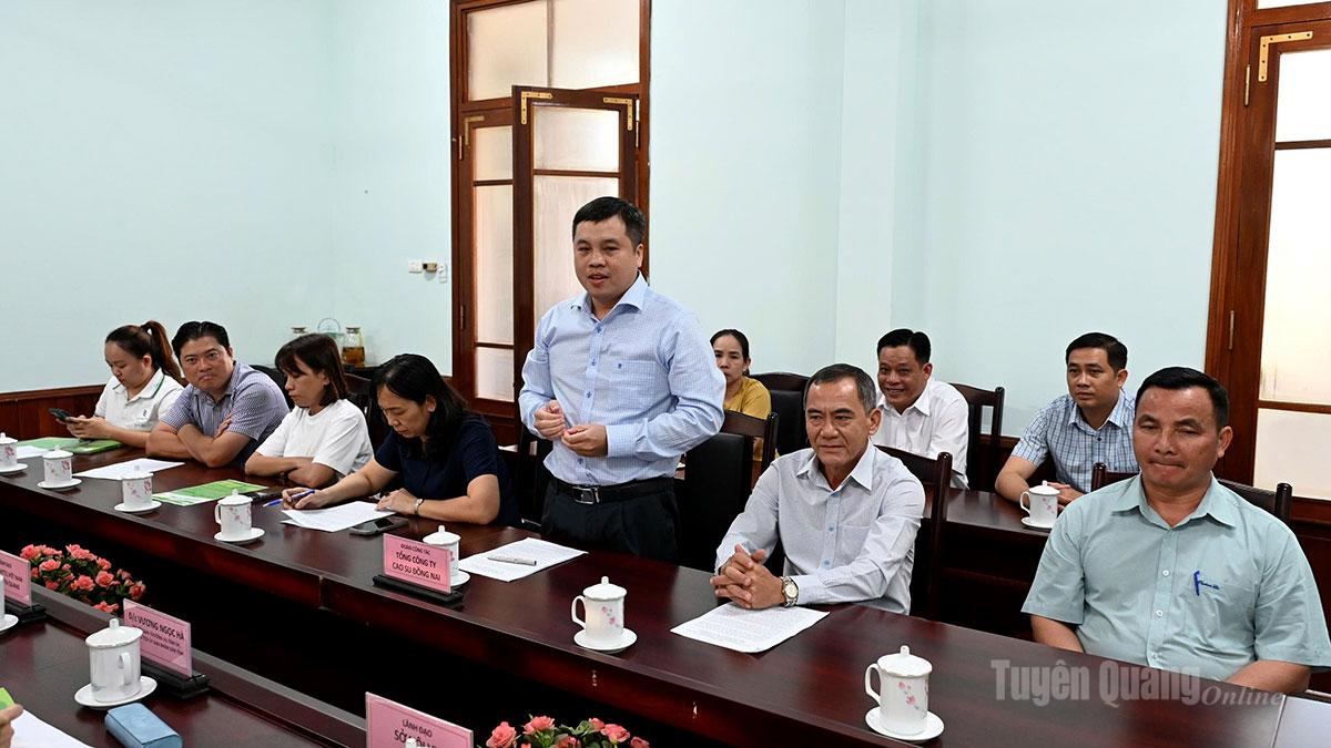 Phó Chủ tịch UBND tỉnh đề nghị Tổng Công ty Cao su Đồng Nai tiếp tục tổ chức chương trình giới thiệu việc làm tại tỉnh để người lao động có đầy đủ thông tin về số lượng tuyển dụng, chế độ, yêu cầu của việc làm và các chế độ đãi ngộ khác; quan tâm thêm tới người lao động về tinh thần, văn hóa truyền thống. Đồng chí tin tưởng sẽ ngày càng nhiều lao động của Tuyên Quang được đến làm việc tại các công ty, ngoài giải quyết việc làm, tăng thu nhập, giúp bà con nâng cao dân trí.
