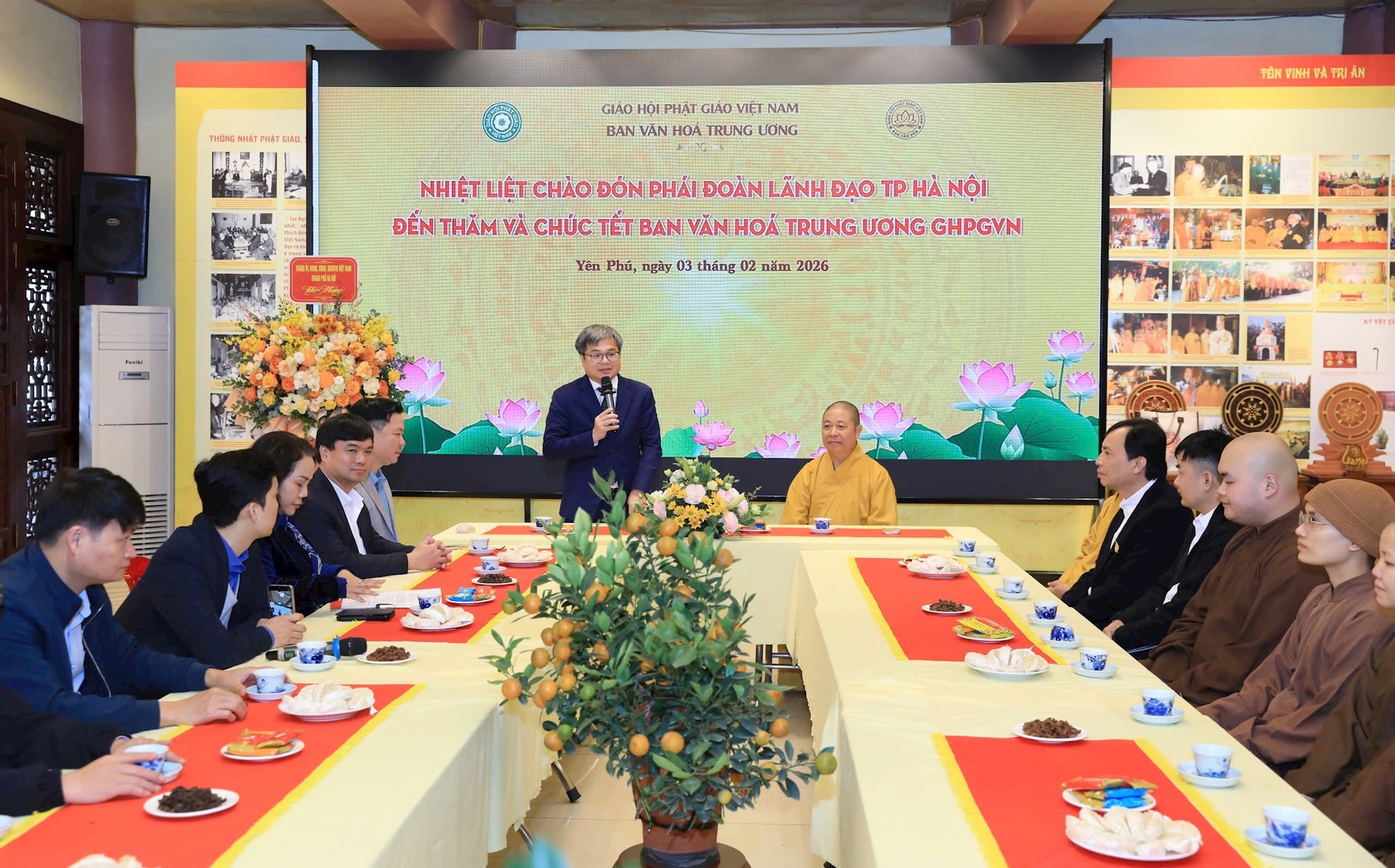 Ghi nhận và đánh giá cao vai trò của chùa Yên Phú trong việc gìn giữ, phát huy các giá trị văn hóa truyền thống, là điểm tựa tâm linh của nhân dân địa phương, Phó Chủ tịch UBND thành phố Trương Việt Dũng gửi lời chúc tới Hòa thượng Thích Thọ Lạc - Trụ trì chùa Yên Phú, Trưởng ban Văn hóa Trung ương Giáo hội Phật giáo Việt Nam, cùng chư tăng, phật tử một năm mới an khang, tiếp tục đồng hành chính quyền trong xây dựng đời sống văn hóa, đoàn kết trong cộng đồng dân cư.