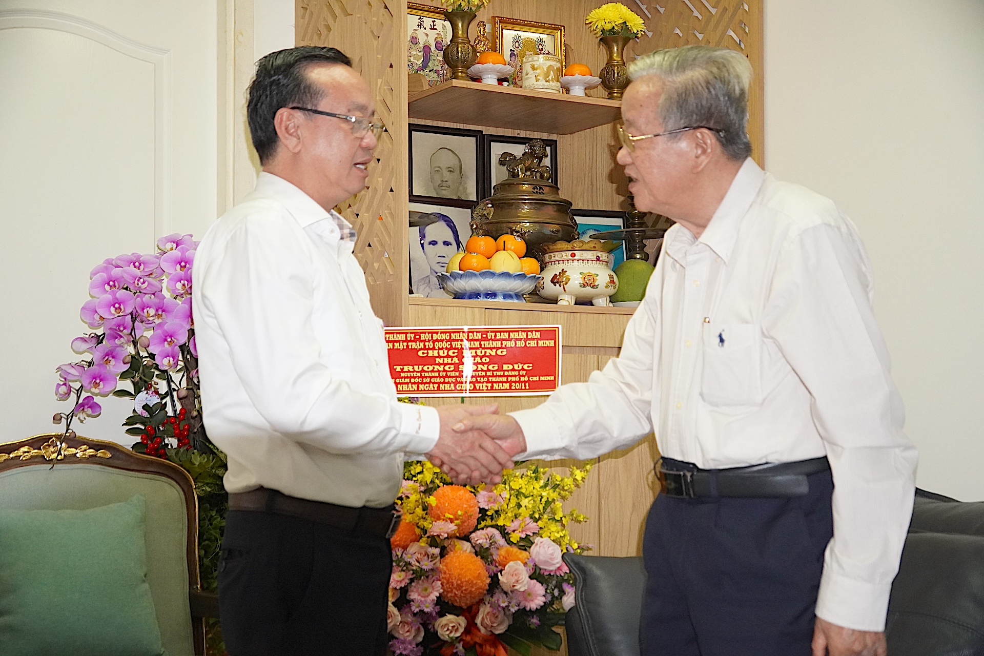 Nhà giáo Trương Song Đức trân trọng cảm ơn sự quan tâm của lãnh đạo TPHCM. Dù tuổi cao, ông cho biết vẫn luôn giữ trọn tâm huyết với ngành, mong muốn thành phố sớm có các giải pháp quyết liệt nhằm nâng cao chất lượng cơ sở vật chất, đội ngũ cán bộ quản lý và giáo viên để xây dựng môi trường giáo dục tiên tiến, hiện đại và hội nhập.